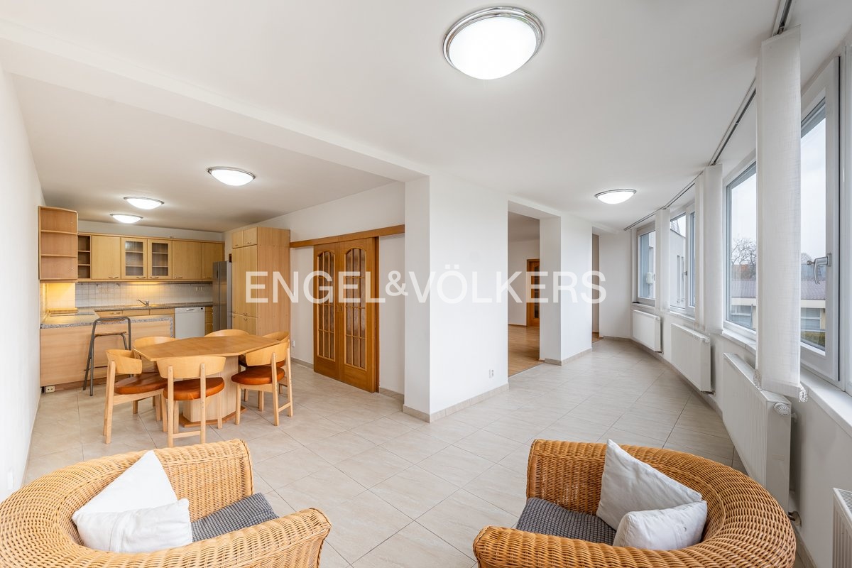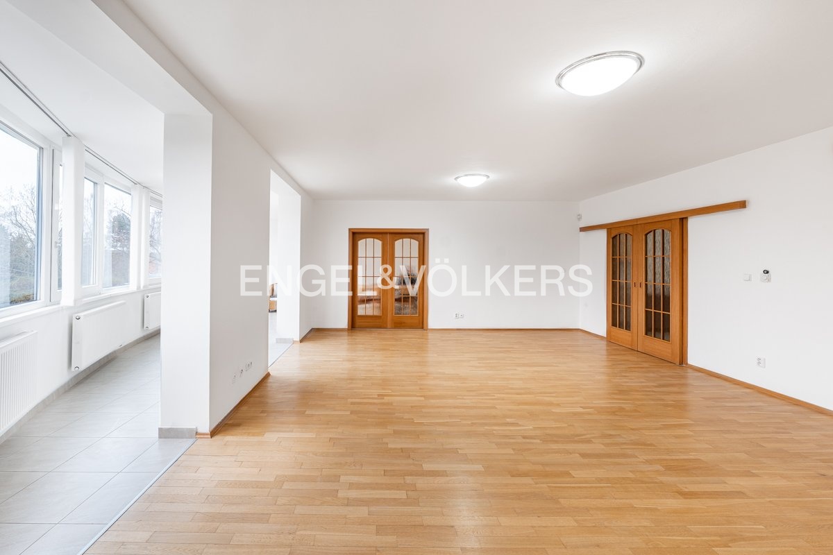 K dlouhodobému pronájmu je připraven prostorný byt o dispozici 5+kk a celkové ploše 245 m², situovaný ve 2. nadzemním podlaží domu s výtahem v atraktivní lokalitě Prahy 6, v těsné blízkosti přírodní rezervace Divoká Šárka.