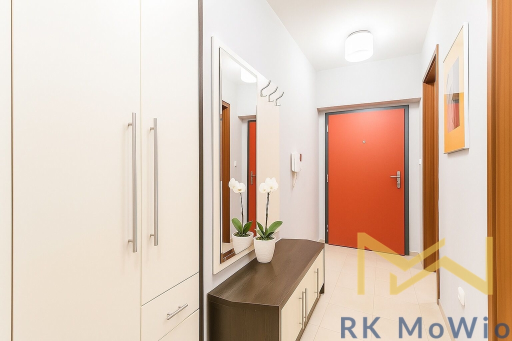 Dispozici bytové jednotky tvoří vstupní předsíň, obývací část s kuchyňským koutem a jídelním prostorem, ložnicová část, 1 koupelna (se sprchovým koutem, umyvadlem), samostatná toaleta, a balkón. Další vybavení bytu: kuchyňské spotřebiče, vestavěné skříně, pračka, LCD televizor, klimatizace, příprava pro vysokorychlostní internet, dřevěné podlahy a dlažba. Garážové stání je možné si pronajmout za extra poplatek 2.500,- Kč/měsíc.