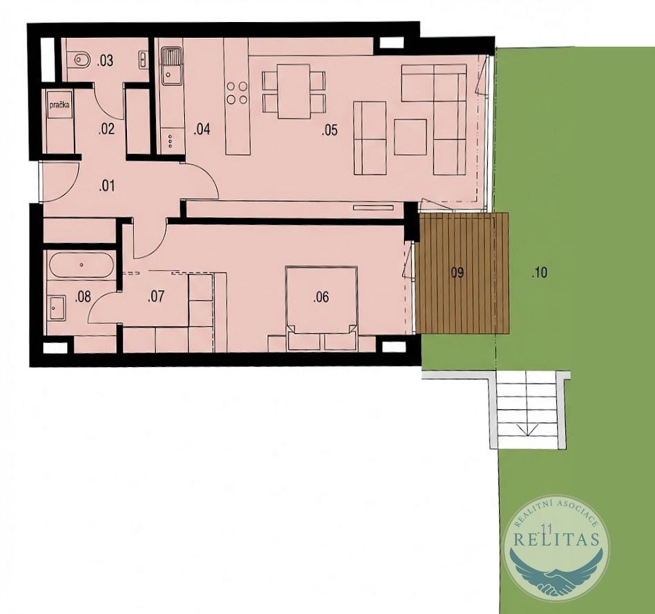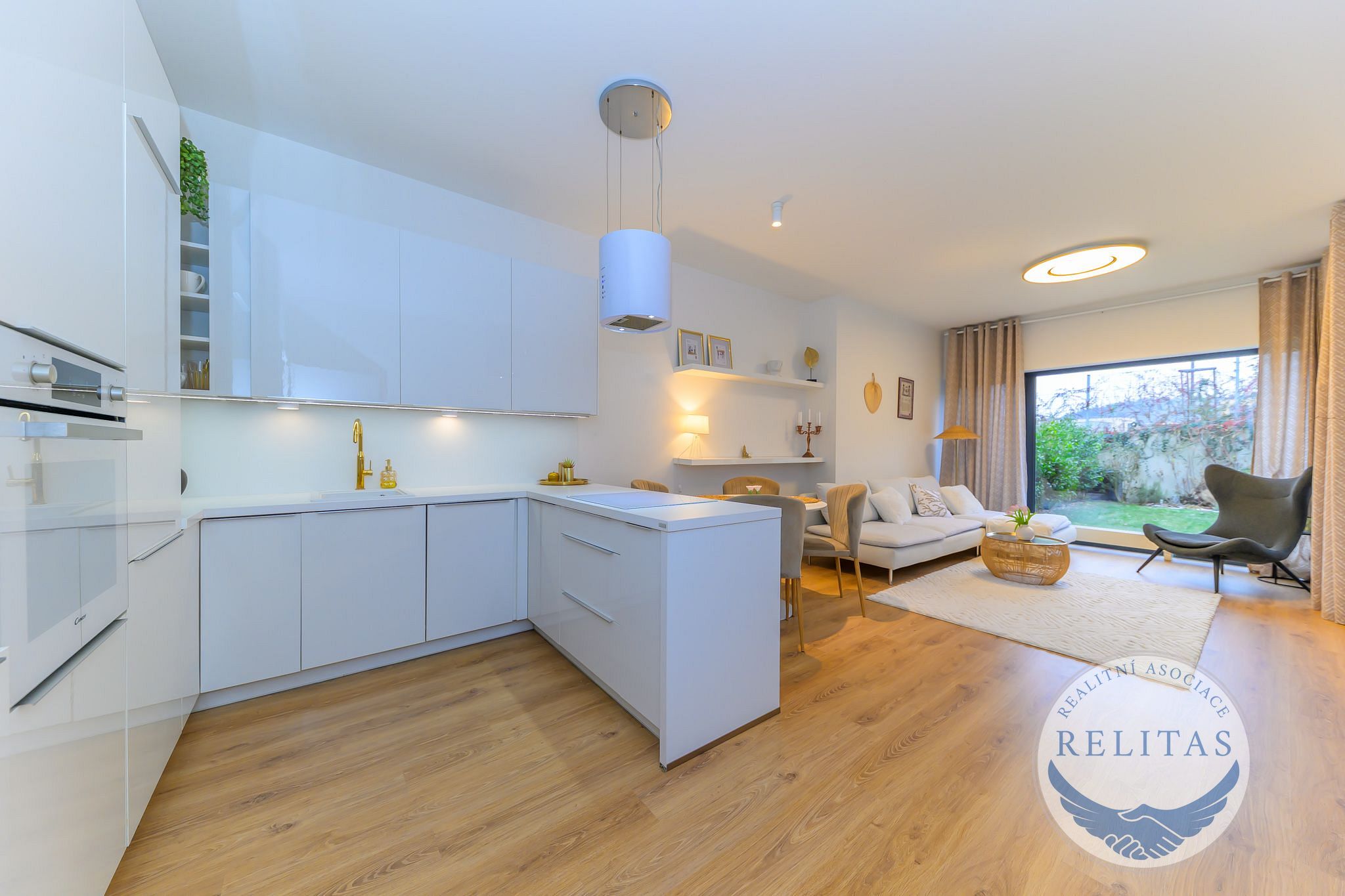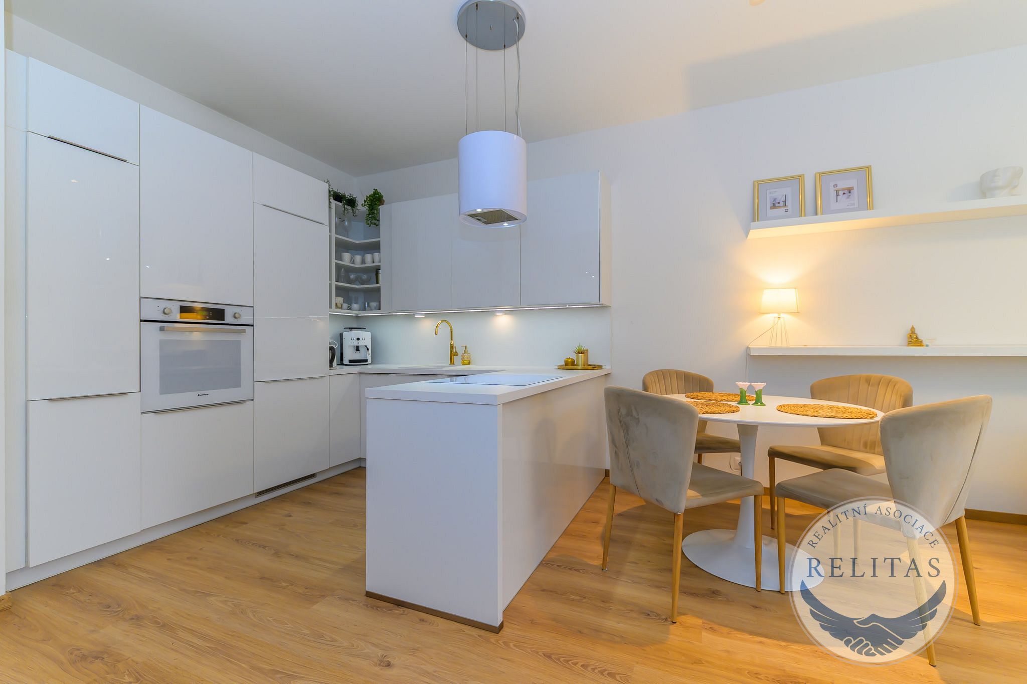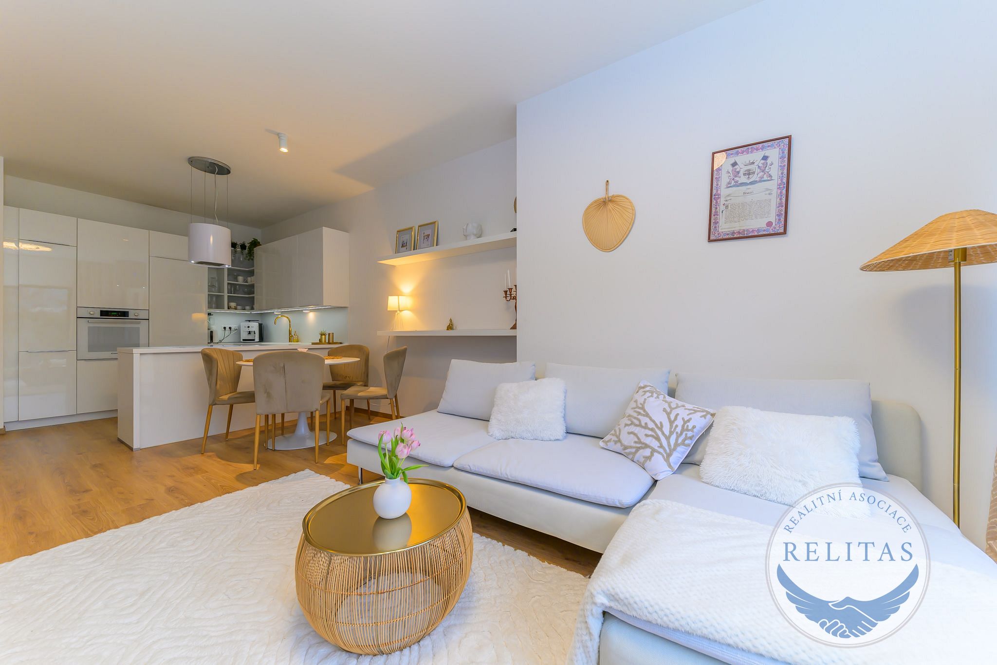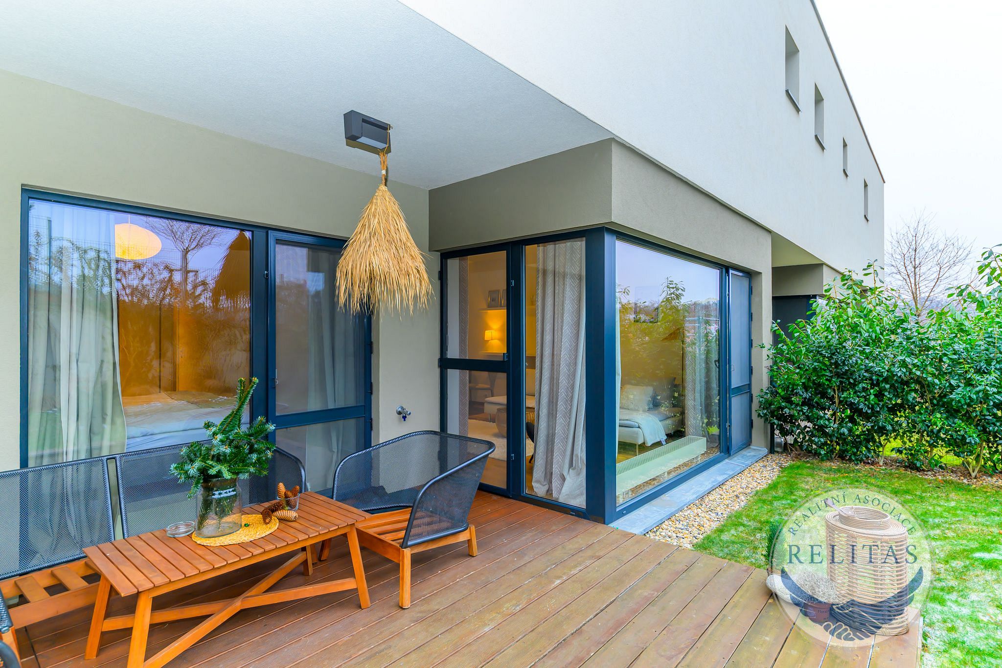 Zařízený byt 2+kk v novostavbě, 73 m² + zahrada s bazénem + GS, Praha 12 - Modřany
