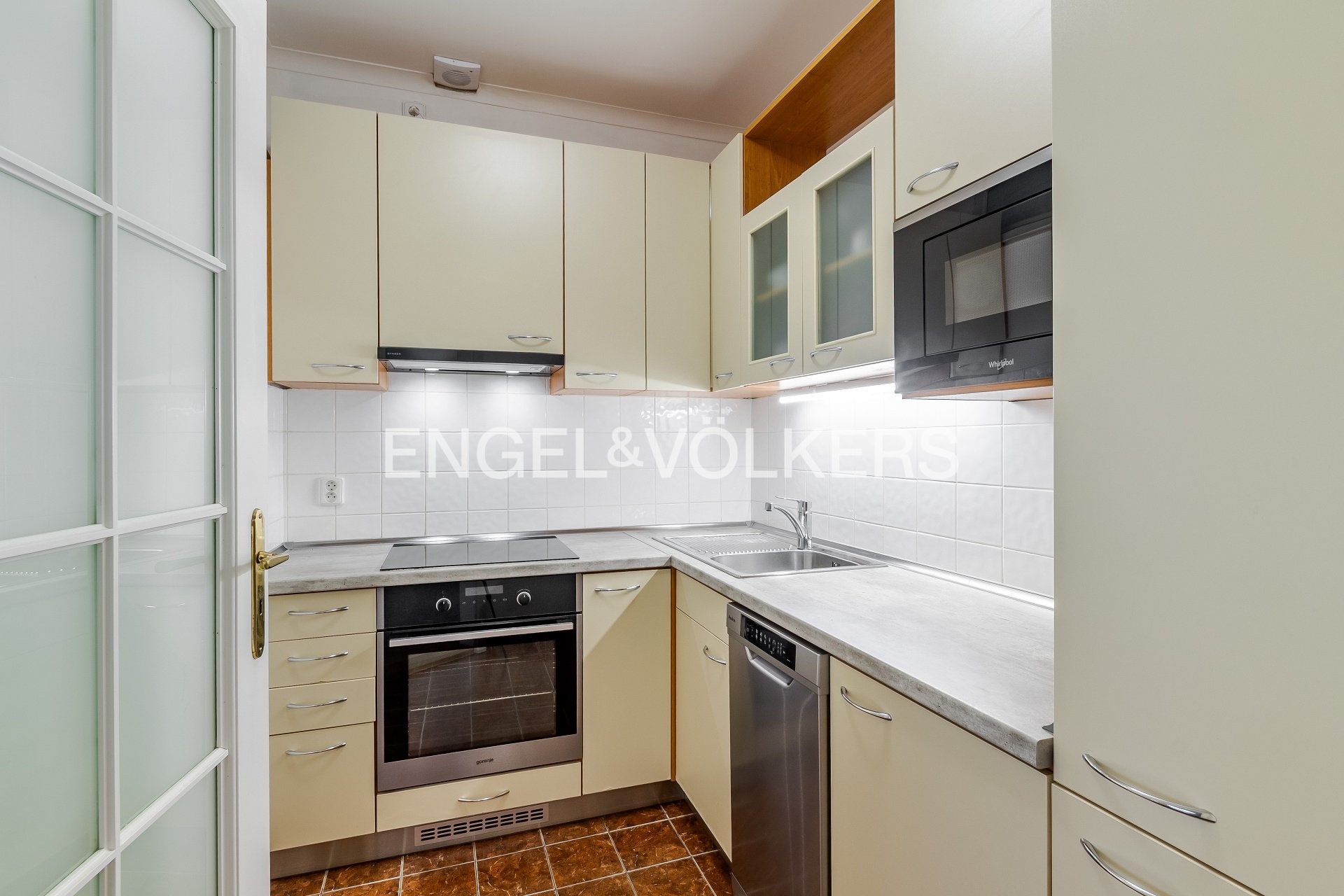 Dispozici bytu tvoří obývací pokoj, samostatná zařízená kuchyně, ložnice, menší pokoj, předsíň a koupelna s vanou. Byt se pronajímá kompletně zařízený nábytkem a vybavením, včetně LCD televize, pračky, záclon, závěsů, lůžkovin a dekorací. Kuchyň je plně vybavena spotřebiči – myčkou, sklokeramickou varnou deskou, horkovzdušnou troubou, digestoří, mikrovlnnou troubou, lednicí s mrazákem a nádobím.