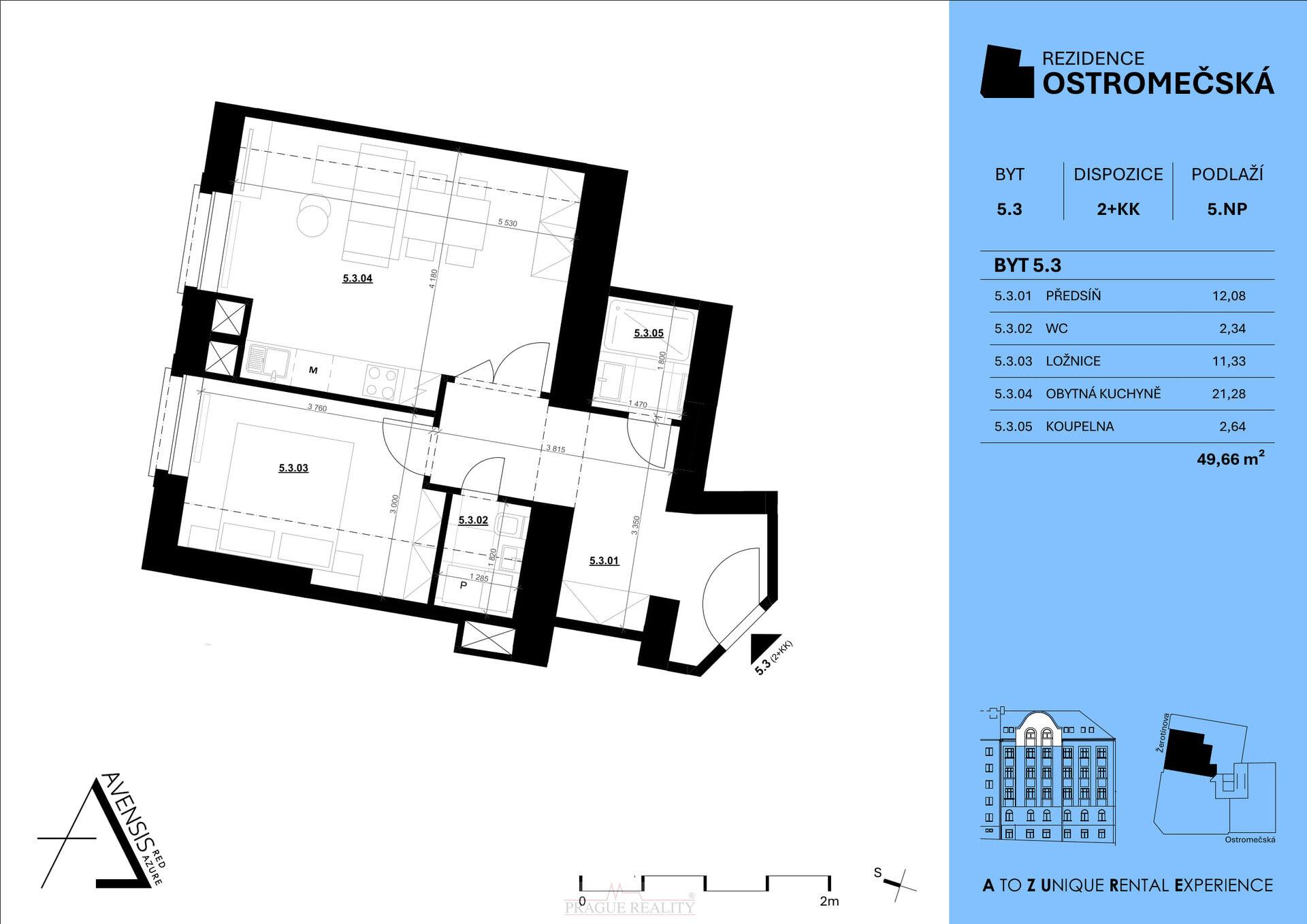 | Dispozice/podlahová plocha: | 2+kk/50 m² |