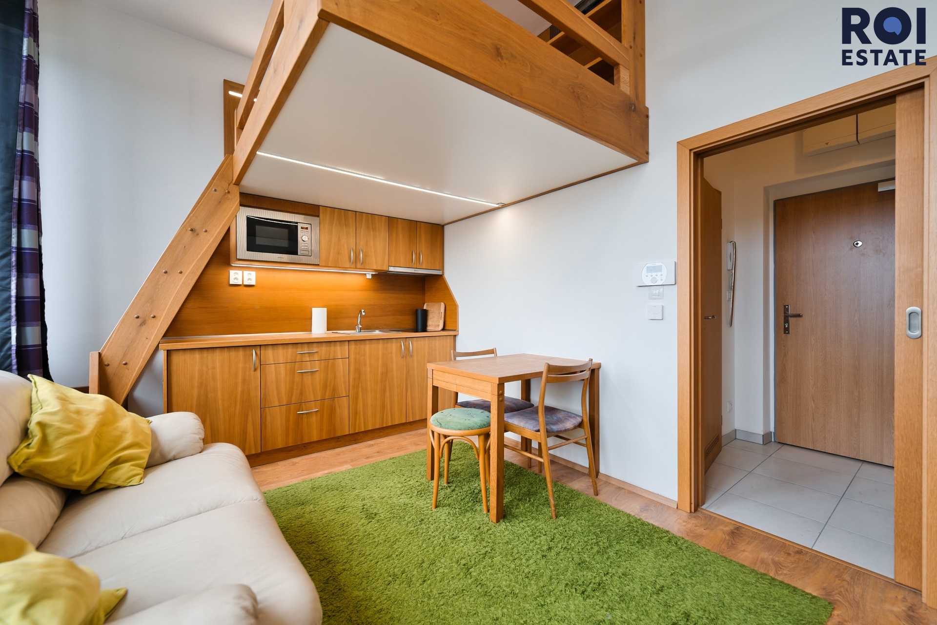 Nabízíme k pronájmu prosvětlený, moderní ateliér 1+kk (28 m²) v Nuslích, který díky vysokému patru na spaní působí mnohem prostorněji a vzdušněji.