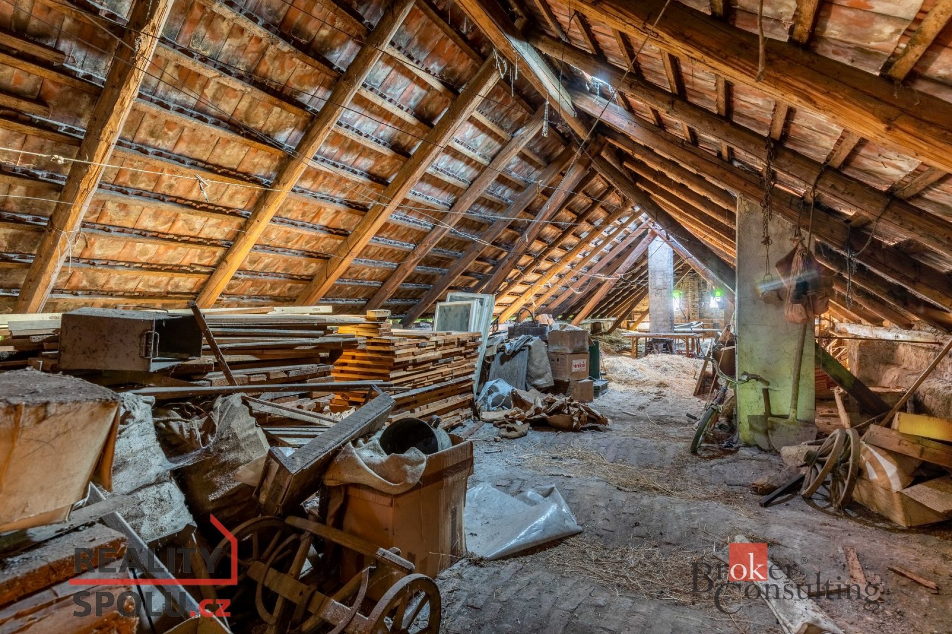 Prostorný dům o dispozici 3+1 je částečně podsklepený a připravený na rekonstrukci. Díky velkorysé půdě vhodné k vestavbě zde můžete vytvořit dalších několik obytných místností nebo třeba samostatné apartmá.