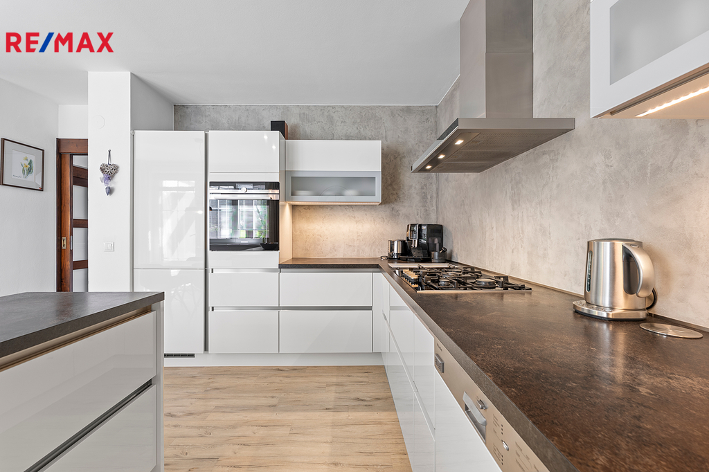 Součástí pozemku o celkové výměře 697 m2 je kompletně podsklepený, dvoupodlažní dům o zastavěné ploše 108 m2, který disponuje užitnou plochou cca 208 m2. Kolaudován byl v r. 1995, ale v průběhu let byl velmi pečlivě udržován a také modernizován: první nadzemní podlaží je po celkové rekonstrukci, v části výměna oken, přístavba pergoly aj.