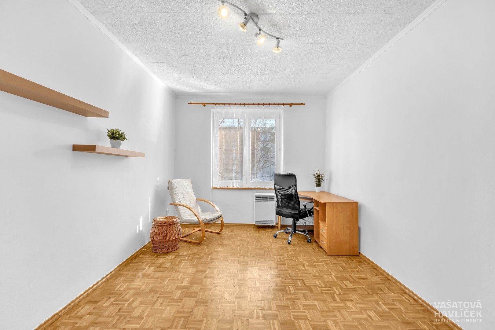 > na podlaze je položena plovoucí podlaha, linoleum a dlažba