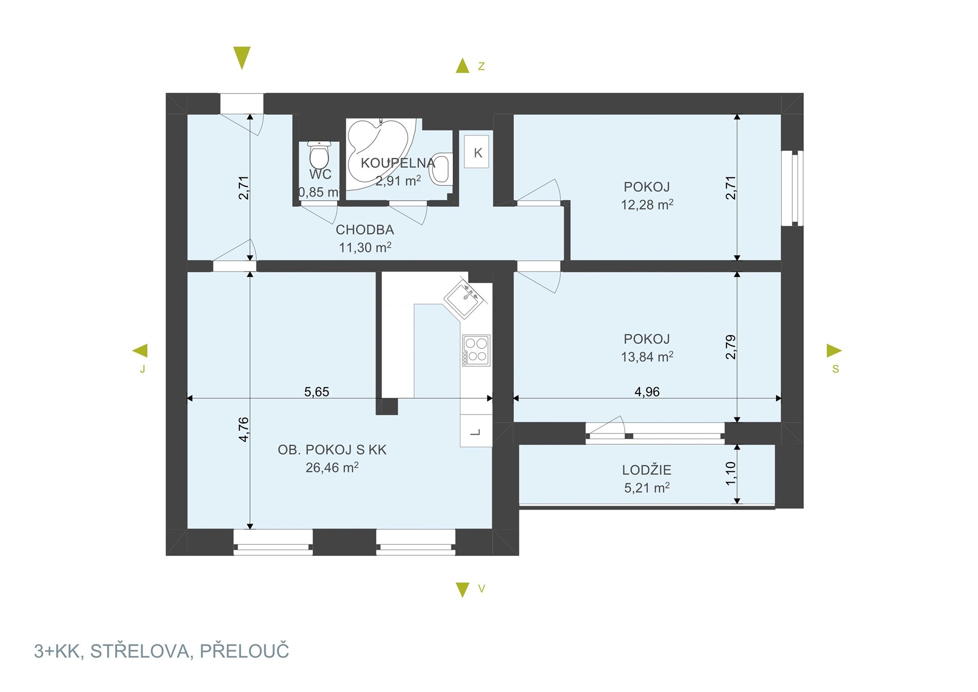 | Dispozice/podlahová plocha: | 3+kk/75 m² |