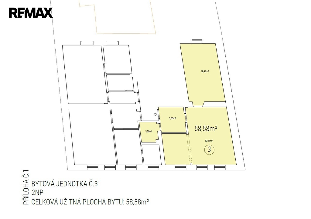 Jednotka č. 3 – 1. NP, byt 1+1, 42,8 m2