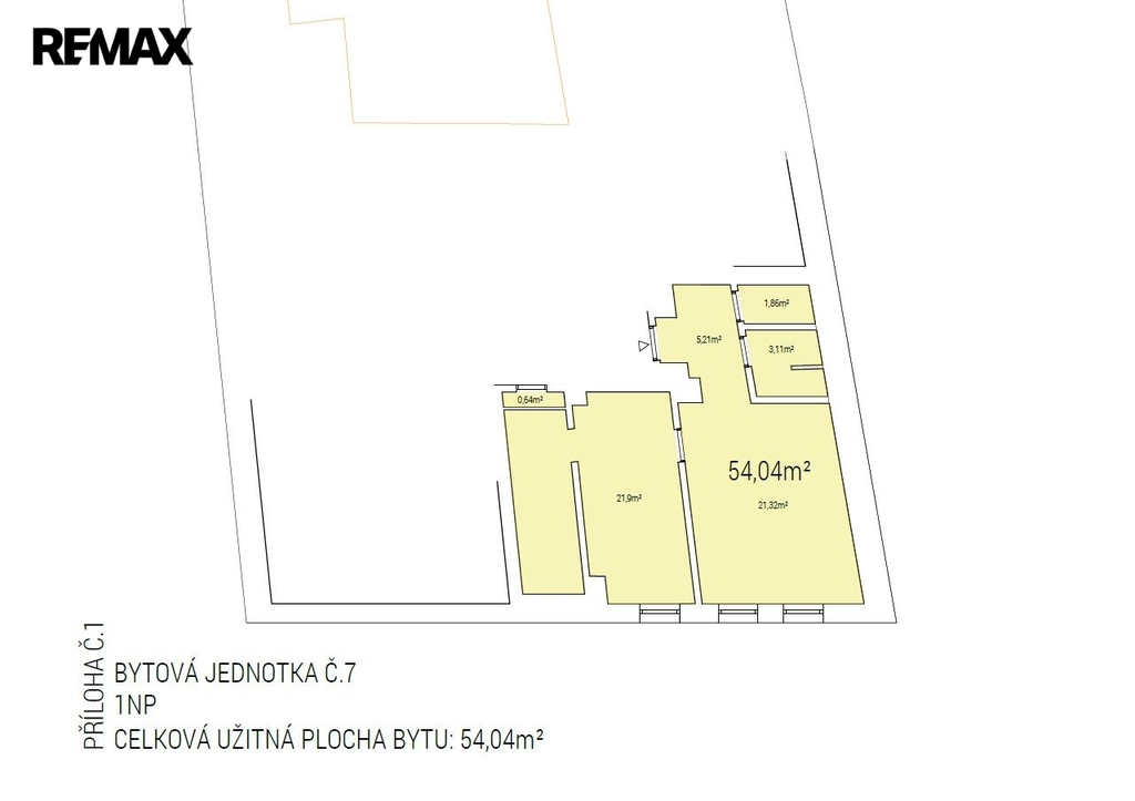Jednotka č. 4 – 1. NP, byt 2+1, 51,8 m2