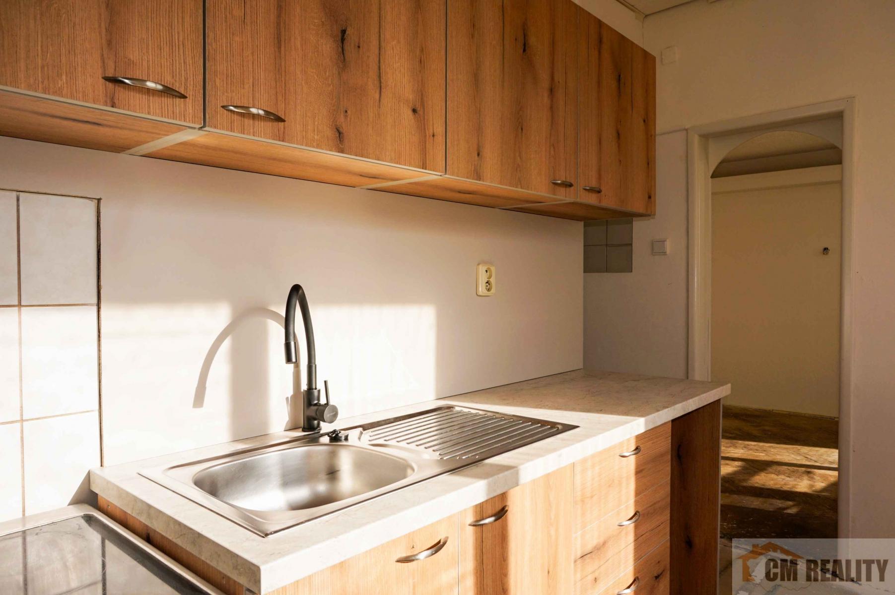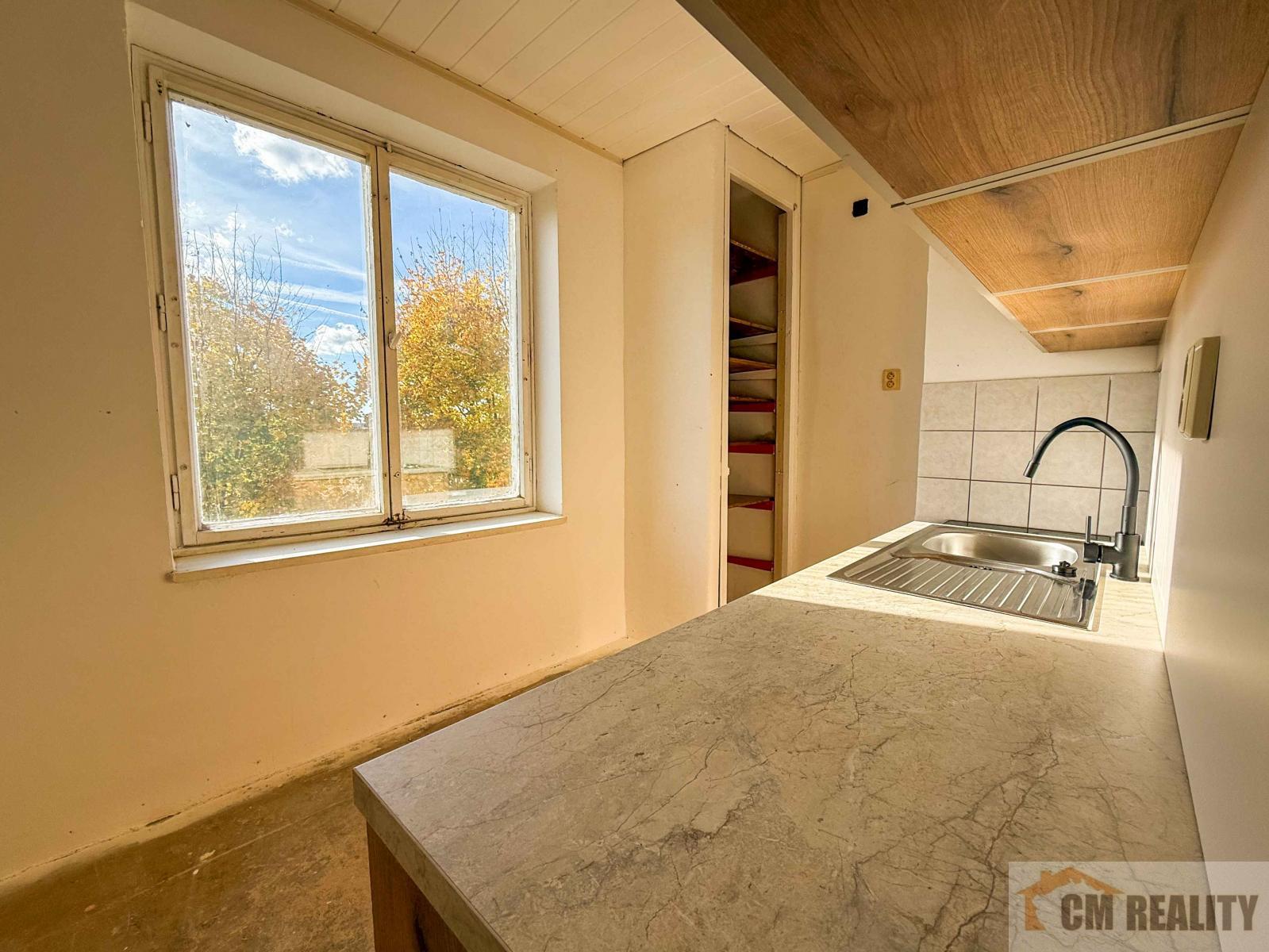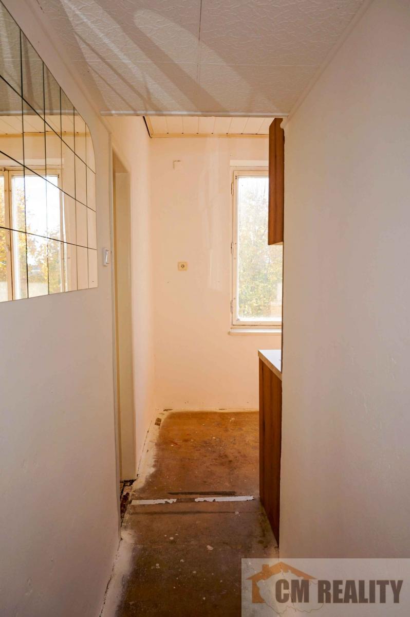 Byt je světlý, s orientací na jihozápad, s příjemným výhledem do okolní zeleně. Nemovitost je určena ke kompletní rekonstrukci. Ideální pro mladý pár nebo jako investice na pronájem. Součástí je nová kuchyňská linka a interiérové dveře. Původní dřevěná okna, potřeba dodělat podlahy.