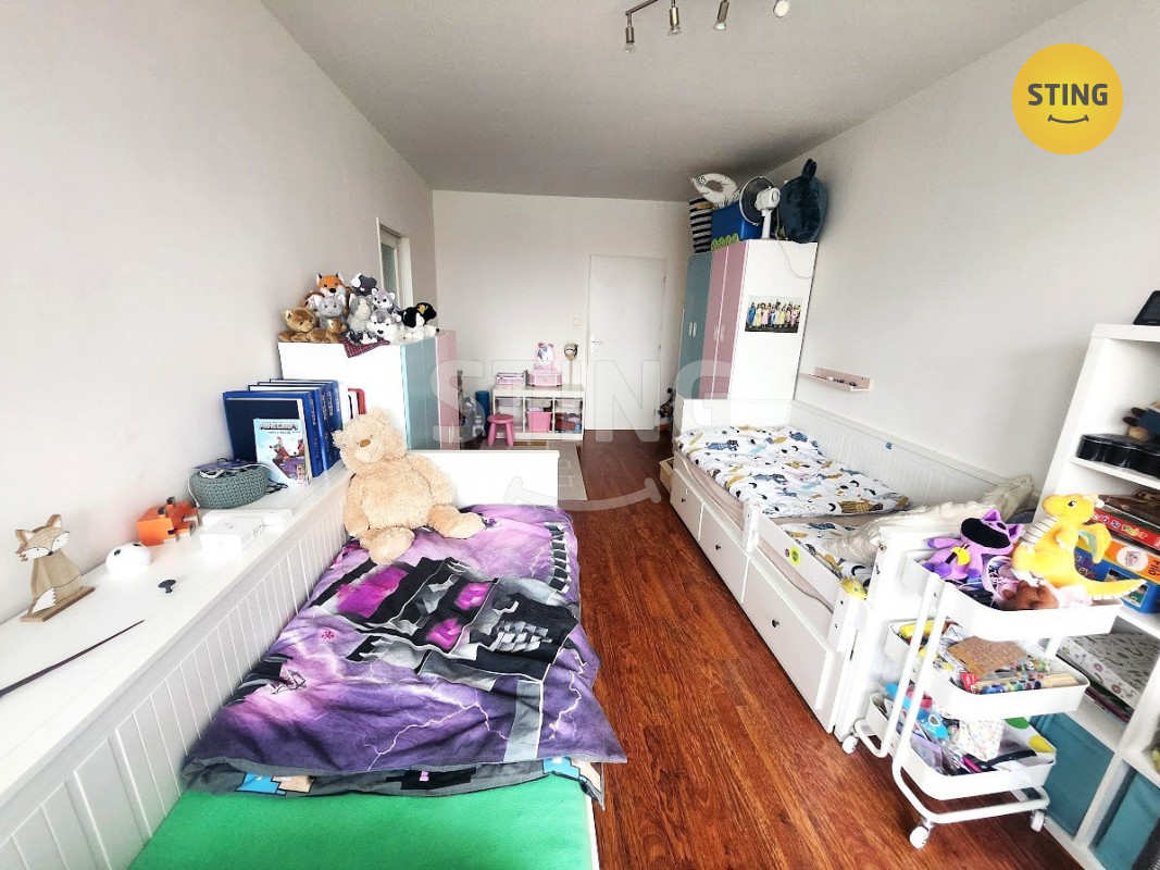 Obývací pokoj je neprůchozí a volně navazuje na kuchyň, přičemž z obou těchto místností je vstup na balkon (4,79 m²) s příjemným výhledem do zeleně. Dětský pokoj je průchozí do ložnice, kde zůstává velká vestavěná zrcadlová skříň vyrobená na míru. Velkou přidanou hodnotou je komora umístěná přímo na mezipatře u bytu, která výrazně rozšiřuje úložné prostory a zvyšuje komfort každodenního bydlení. Vytápění je řešeno novými elektrickými přímotopy v obývacím pokoji, dětském pokoji i ložnici.
