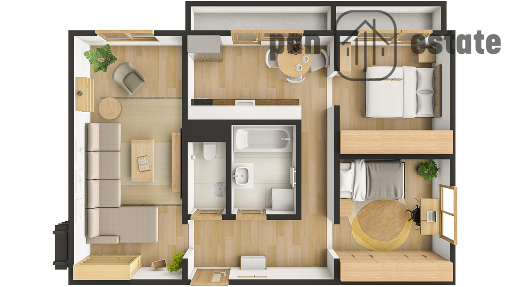 Byt je v původním, ale udržovaném stavu. Je tedy možné jej ihned běžně užívat, zároveň však představuje ideální základ pro rekonstrukci podle vlastních představ. Právě v tom spočívá jeho velká přidaná hodnota – nový vlastník nezískává kompromisně upravený interiér podle vkusu někoho jiného, ale prostor, který si může vytvořit přesně podle svých potřeb a stylu. V prezentaci jsou k dispozici také vizualizace ve fotografiích i videu, které pomáhají lépe ukázat, jak atraktivně lze byt po rekonstrukci řešit a využít.