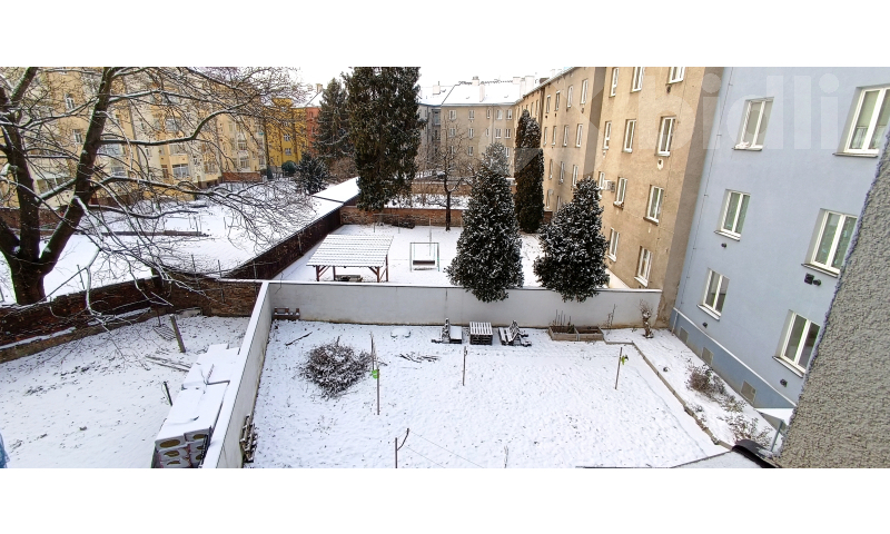 Velkou výhodou bytu je možnost využívání společné zahrady ve vnitrobloku domu, která je ideální pro relaxaci a odpočinek na čerstvém vzduchu. Po domluvě je možné zřídit i menší zahrádku pro pěstování zeleniny. K bytu náleží sklep, v domě je dále k dispozici kolárna a sušárna. Parkování je možné přímo u domu na ulici.