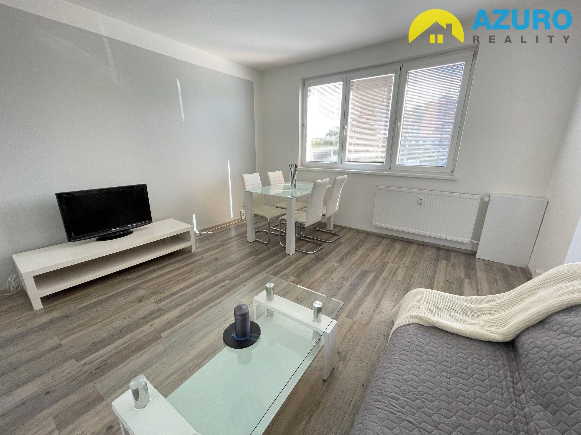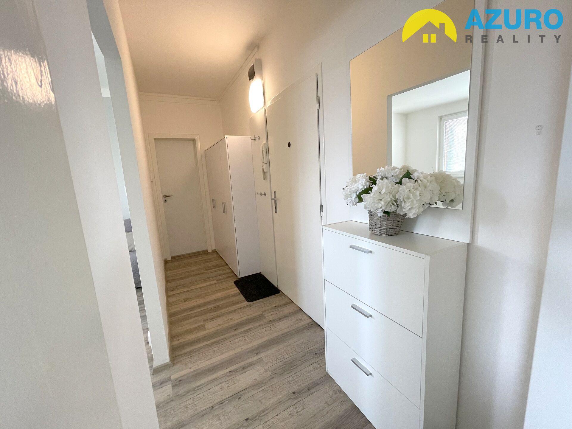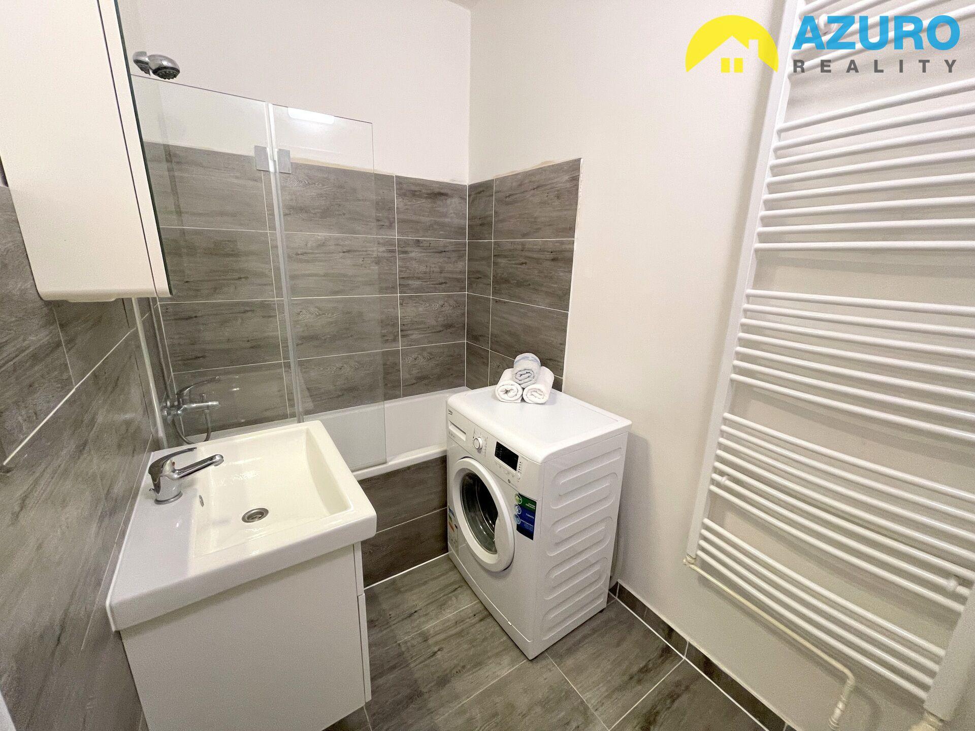 V bytě praktická kuchyňská linka s vestavěnými spotřebiči (sklokeramická varná deska, el. trouba, myčka, digestoř) a lednicí, v koupelně vana se zástěnou, umyvadlo se skříňkou, pračka, a oddělené WC, v obývacím pokoji a ložnici zůstává vybavení dle fotografií.