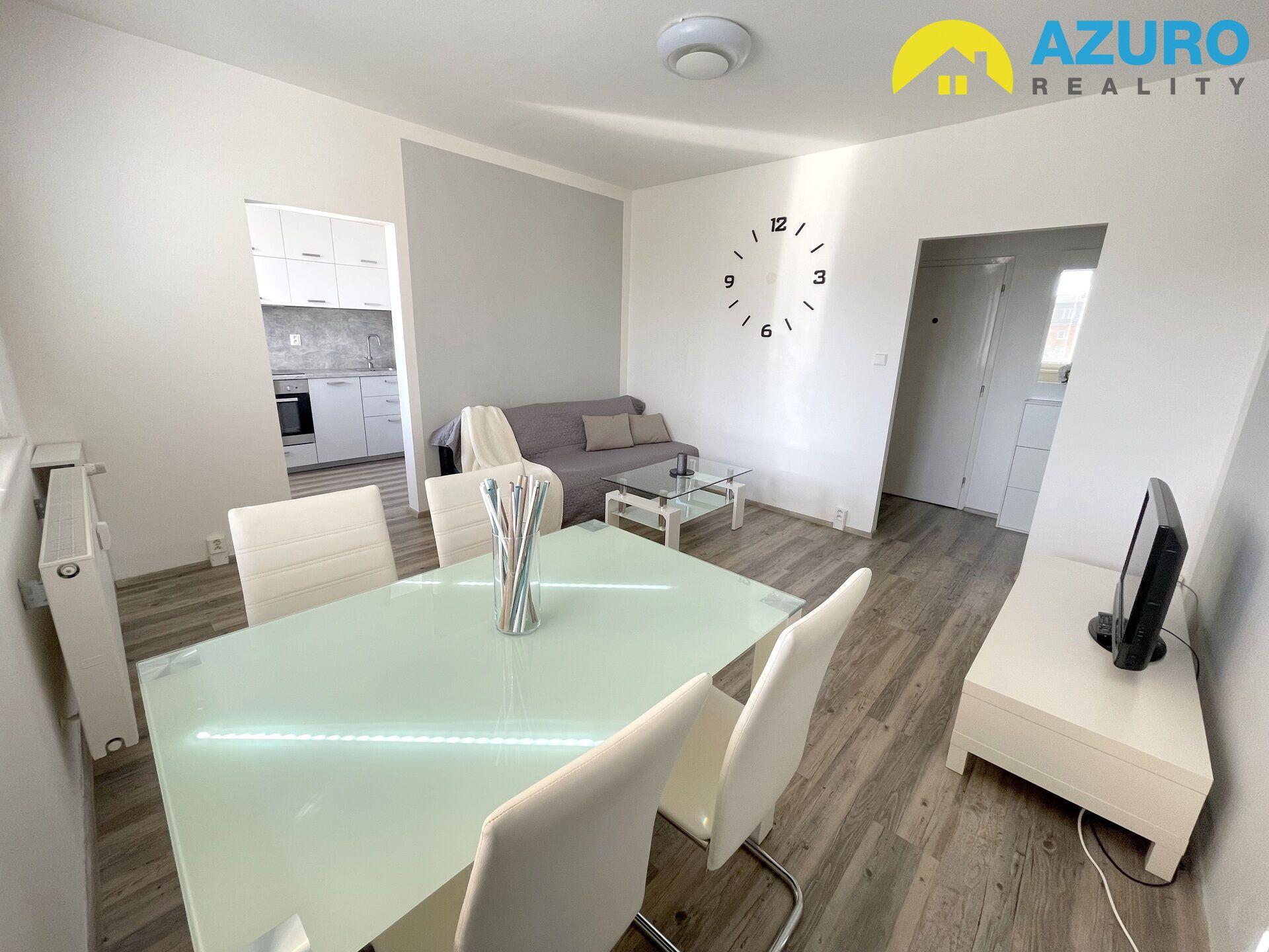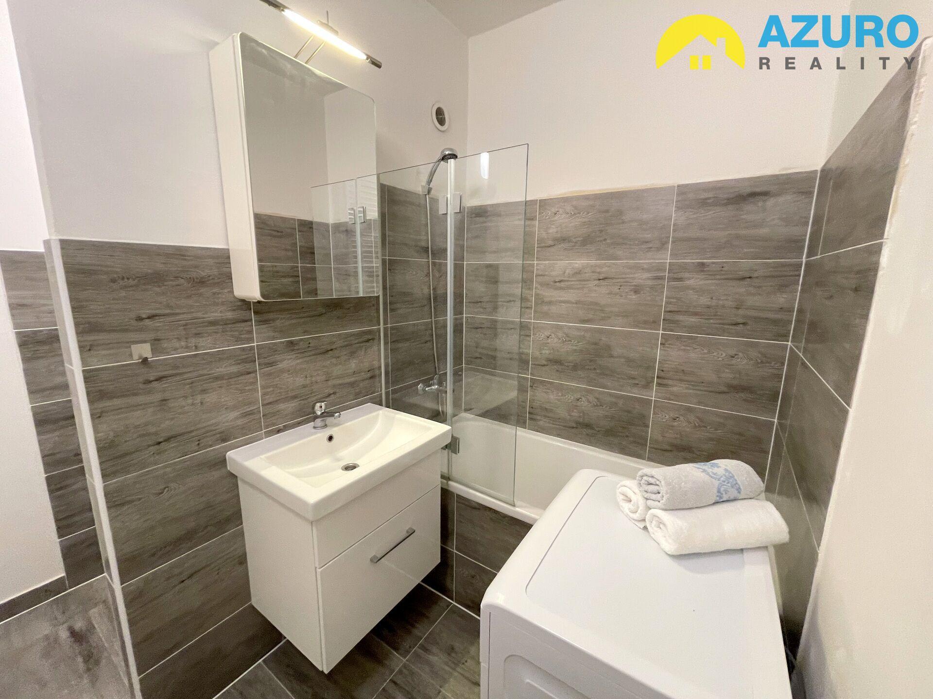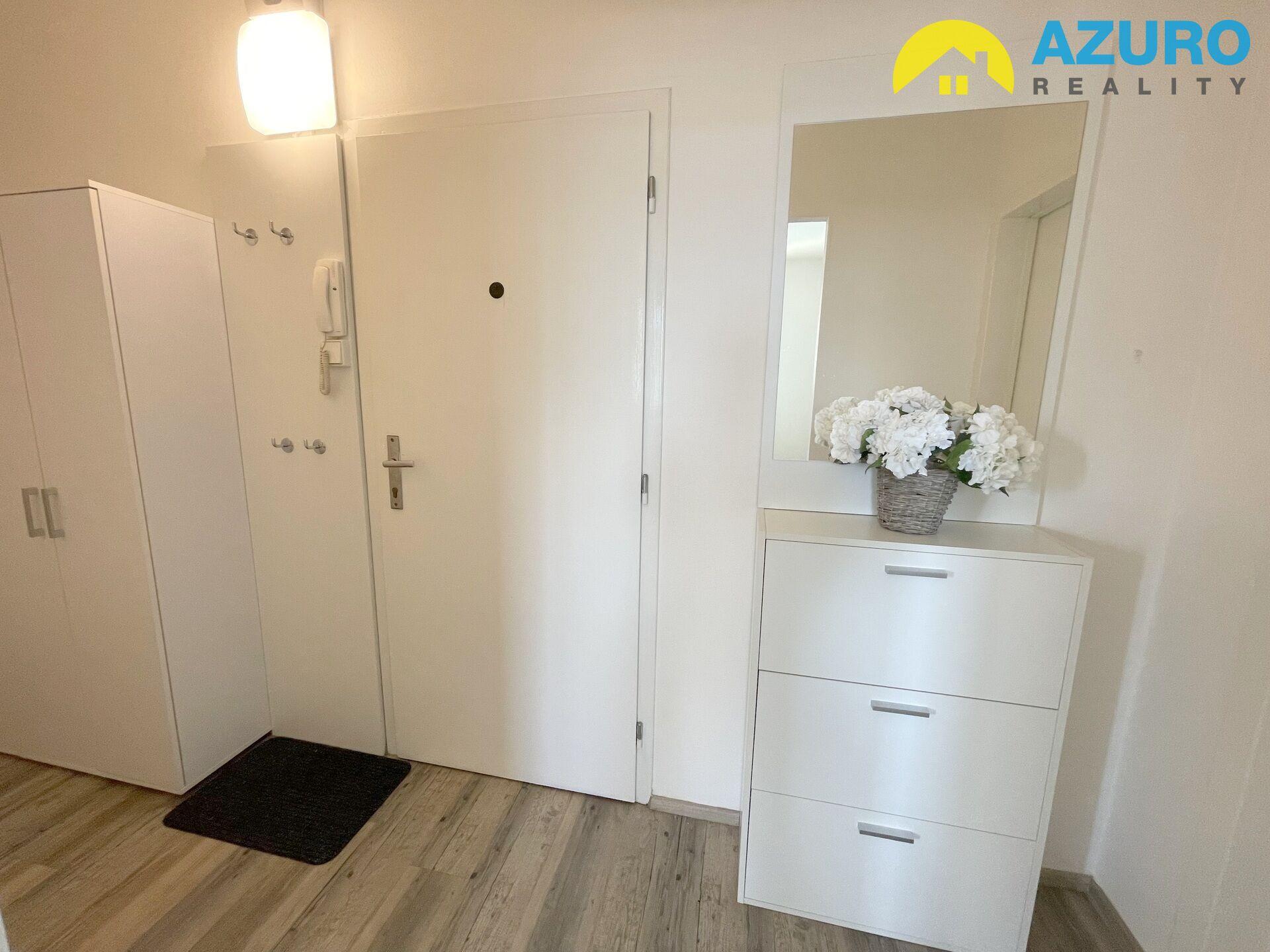 V bytě praktická kuchyňská linka s vestavěnými spotřebiči (sklokeramická varná deska, el. trouba, myčka, digestoř) a lednicí, v koupelně vana se zástěnou, umyvadlo se skříňkou, pračka, a oddělené WC, v obývacím pokoji a ložnici zůstává vybavení dle fotografií.