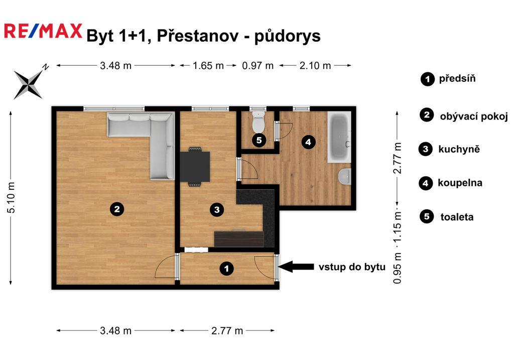 | Dispozice/podlahová plocha: | 1+1/48 m² |