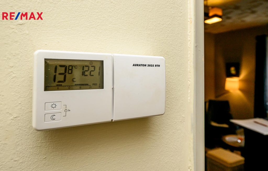 V bytě je ústřední vytápění, zdrojem vytápění je elektrokotel, ohřev vody je zajištěn elektrickým bojlerem, k vaření slouží dvouplotýnková sklokeramická varná deska. Příčka mezi obytnou ložnicí a kuchyní je provedena ze sádrokartonu. Podlahy jsou dřevěné, je na nich položeno PVC.
