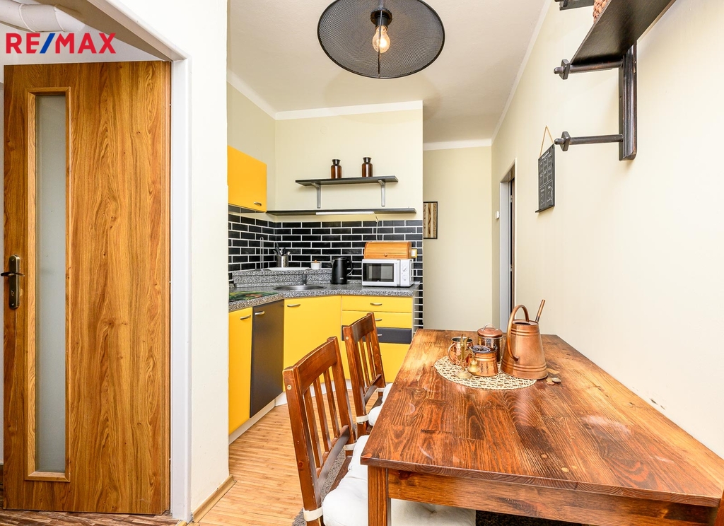 Bytová jednotka má výměru 35 m2. K bytu náleží ještě polovina patrové kůlny za domem. Celková užitná plocha je tak 48 m2.