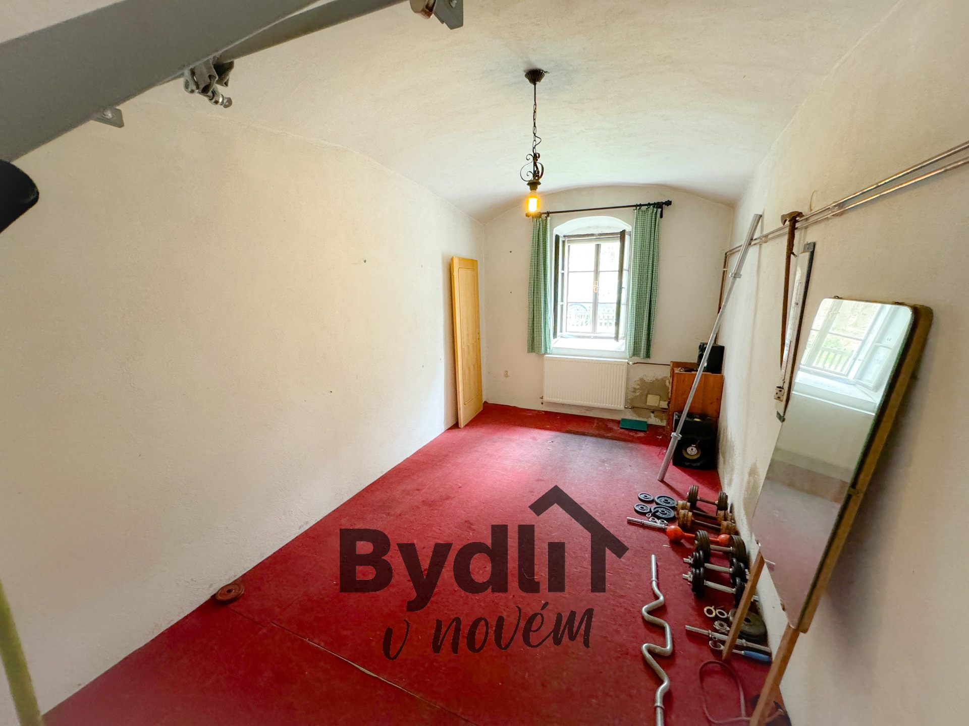 Z průjezdu vstoupíme do chodby ze které můžeme následně vstoupit buďto do obývací části s krbem, kuchyňskou částí a výhledem na les, nebo do ložnice situované do vnitrobloku. Z ní následně do místnosti která může sloužit jako dětský pokoj, pracovna nebo zimní zahrada. V oddělené části pak nalezneme místnost současně sloužící jako posilovna, komoru, koupelnu s rohovou vanou a toaletou, dále pak kotelnu. Vytápění je nově řešeno kotlem na tuhá paliva.