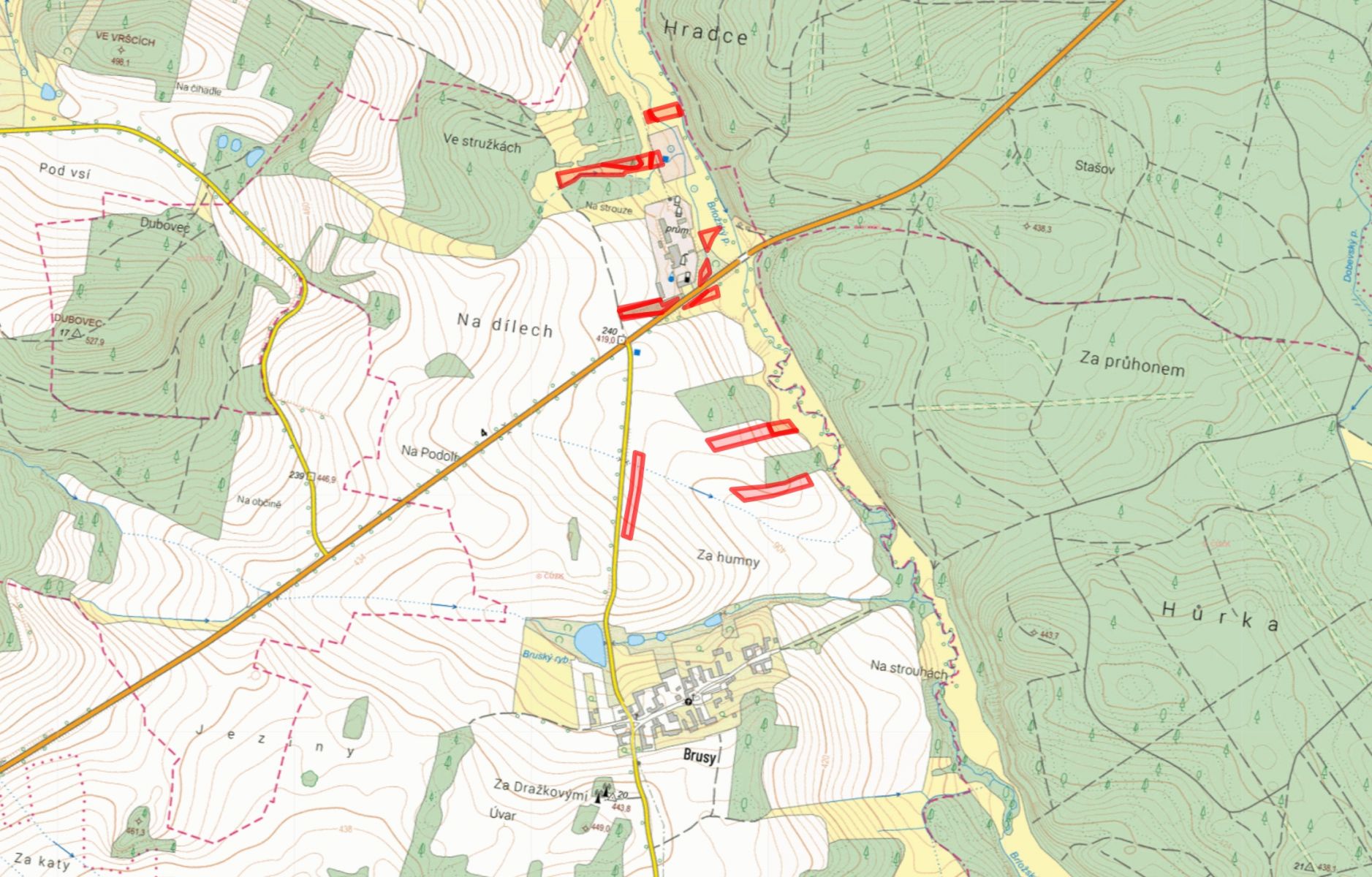 -> katastrální území Brusy, obec Prešťovice