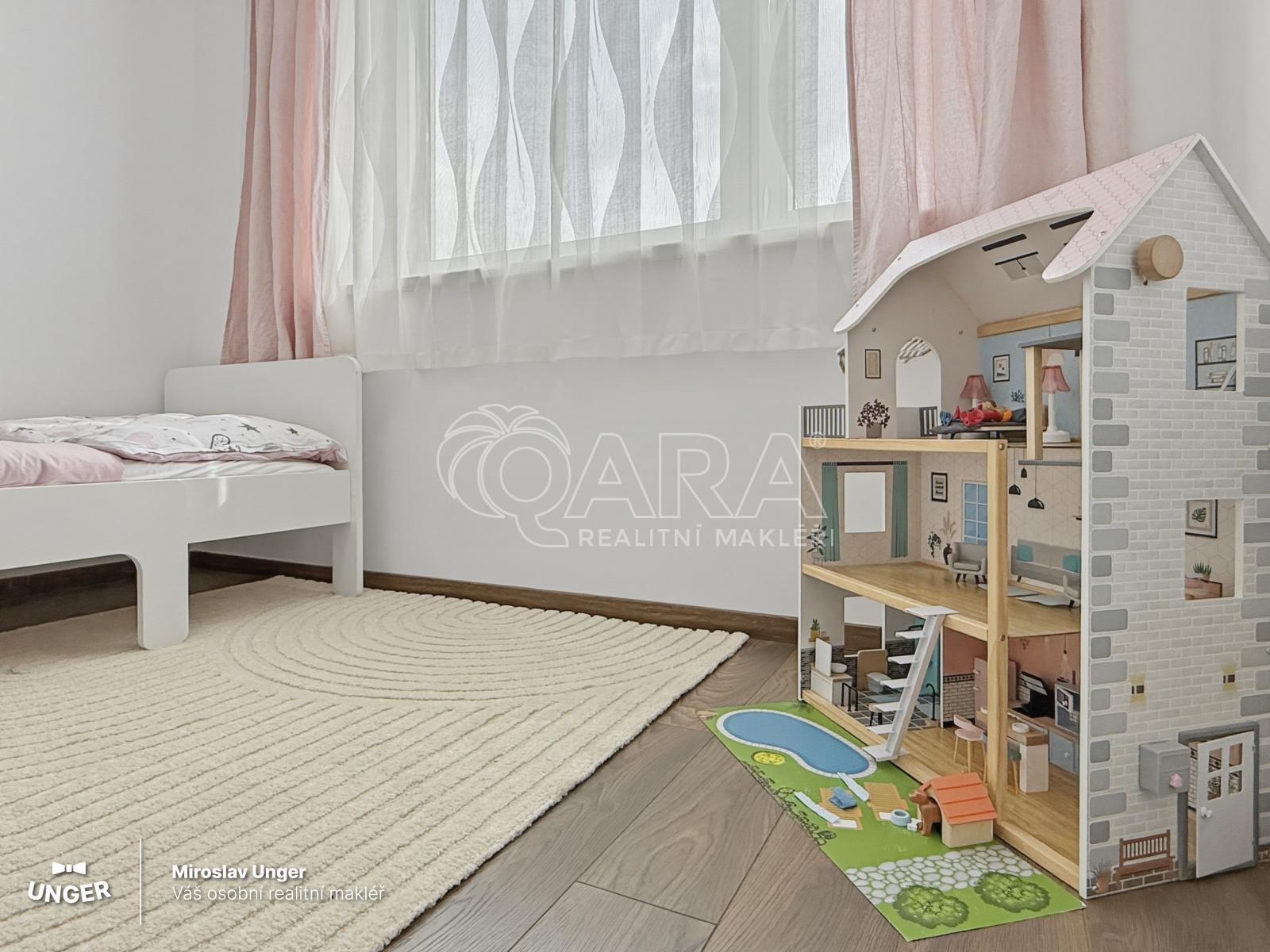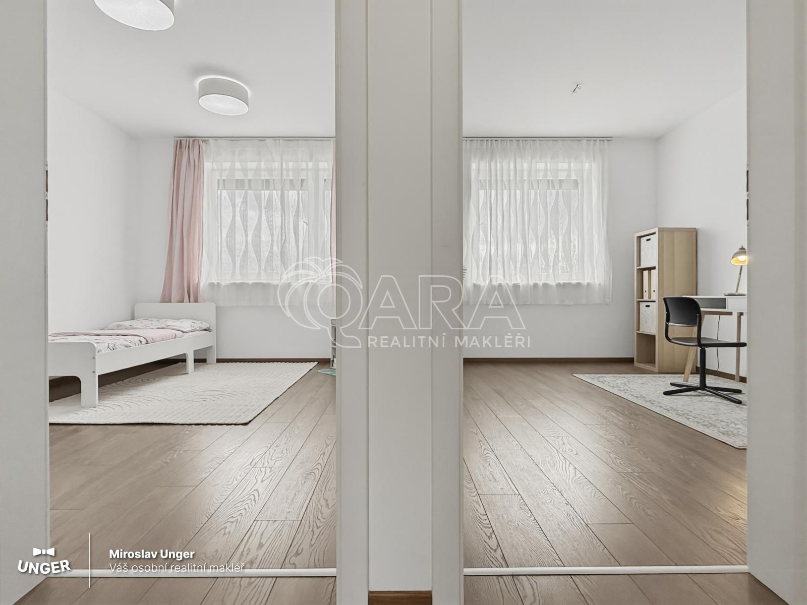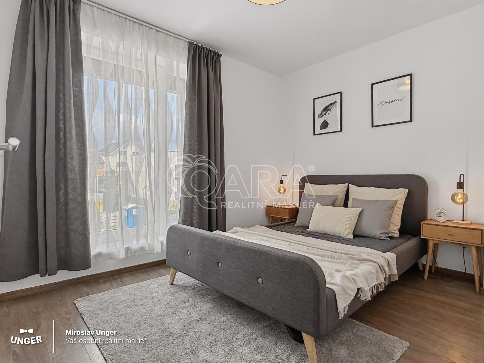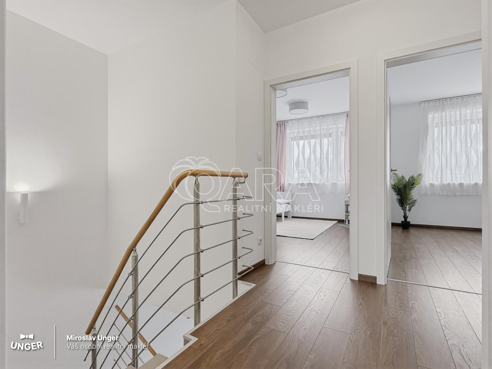 Novostavba z roku 2017 nabízí promyšlenou dispozici pro každodenní život. V přízemí najdete obývací pokoj s kuchyní a přímým vstupem na zahradu s krytou terasou. V patře pak klidovou zónu ložnici s vlastní šatnou a dva samostatné pokoje.