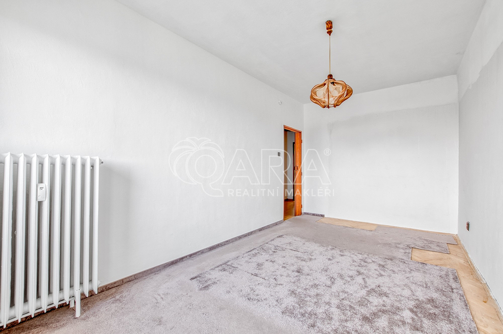 Obývací pokoj o ploše 14,8 m² má dřevěné parkety ve velmi slušném stavu, které přímo vybízejí k renovaci. I z tohoto pokoje je vstup na lodžii. Dětský pokoj (14,8 m²) je orientovaný na jih, má plastová okna a koberec, pod kterým se nacházejí původní dřevěné parkety. Ložnice o výměře 16,3 m² je také orientovaná na jih, podlahovou krytinu zde tvoří plovoucí podlaha.