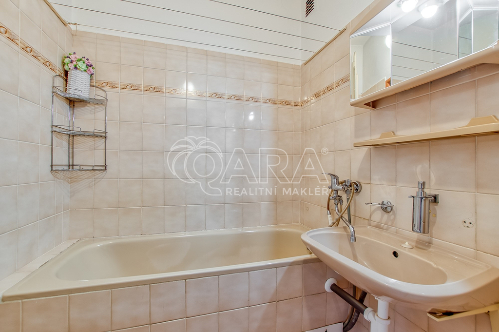 Koupelna je řešena zděným jádrem, vybavena vanou a samostatně odděleným WC. Elektrické rozvody jsou v bytě původní (hliník), ve zděném jádře již v mědi. Byt je plně funkční a připravený k okamžitému užívání.