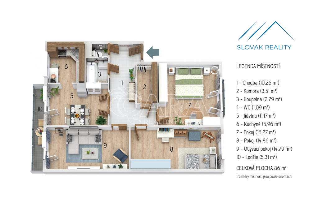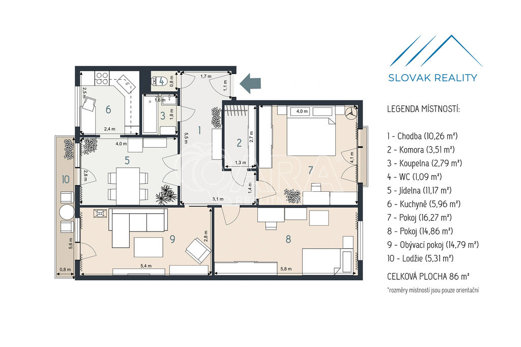 | Dispozice/podlahová plocha: | 3+1/86 m² |