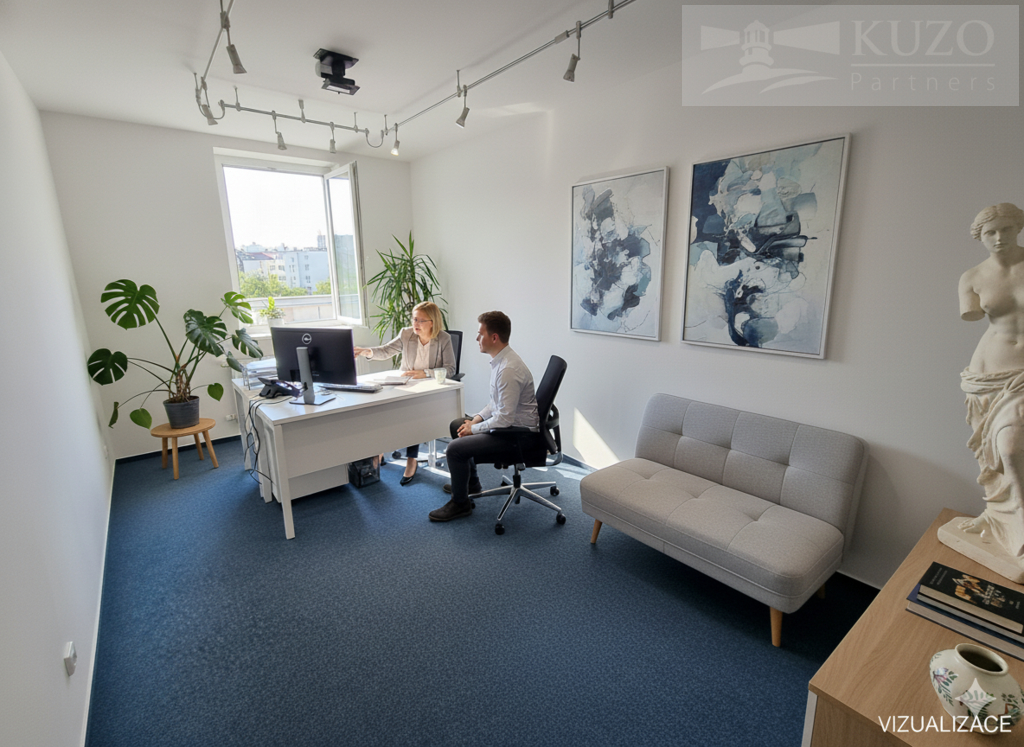 Měsíční nájemné (vč. úklidu spol. prostor): 19 000 Kč