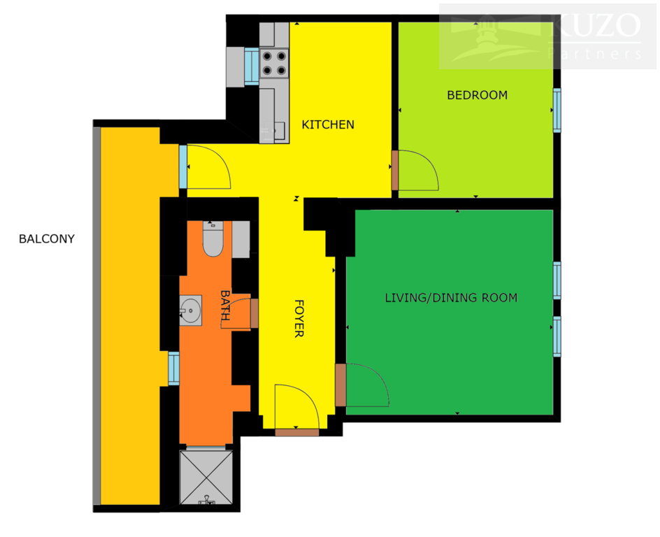 Byt je logicky členěn a díky velkým oknům působí velmi vzdušně: