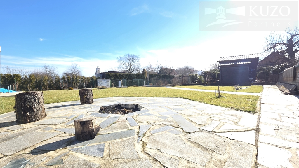 Nádherná zahrada: Pozemek o volné ploše 408 m² je vzorně udržovaný, s připravenými záhonky a dostatkem soukromí pro odpočinek nebo bazén.