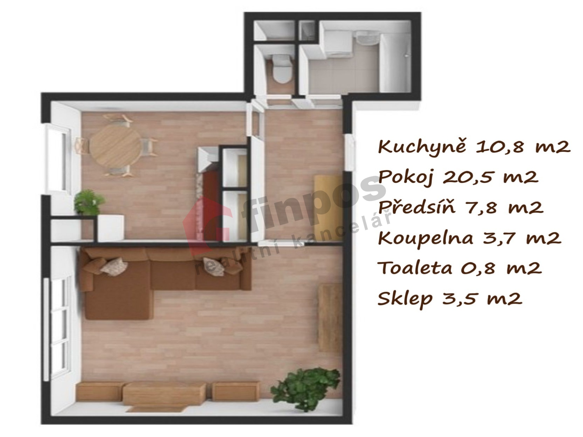 | Dispozice/podlahová plocha: | 1+1/47 m² |