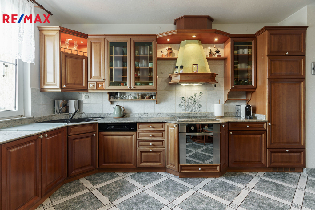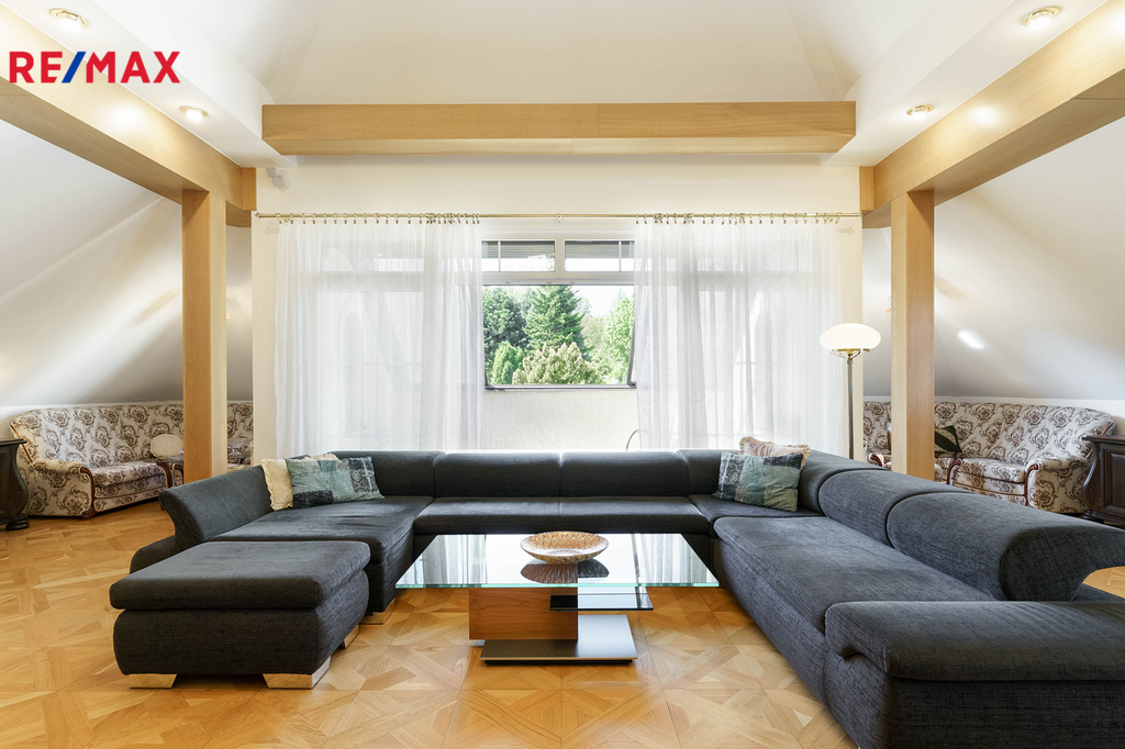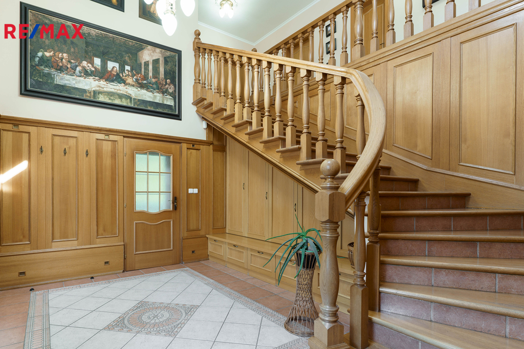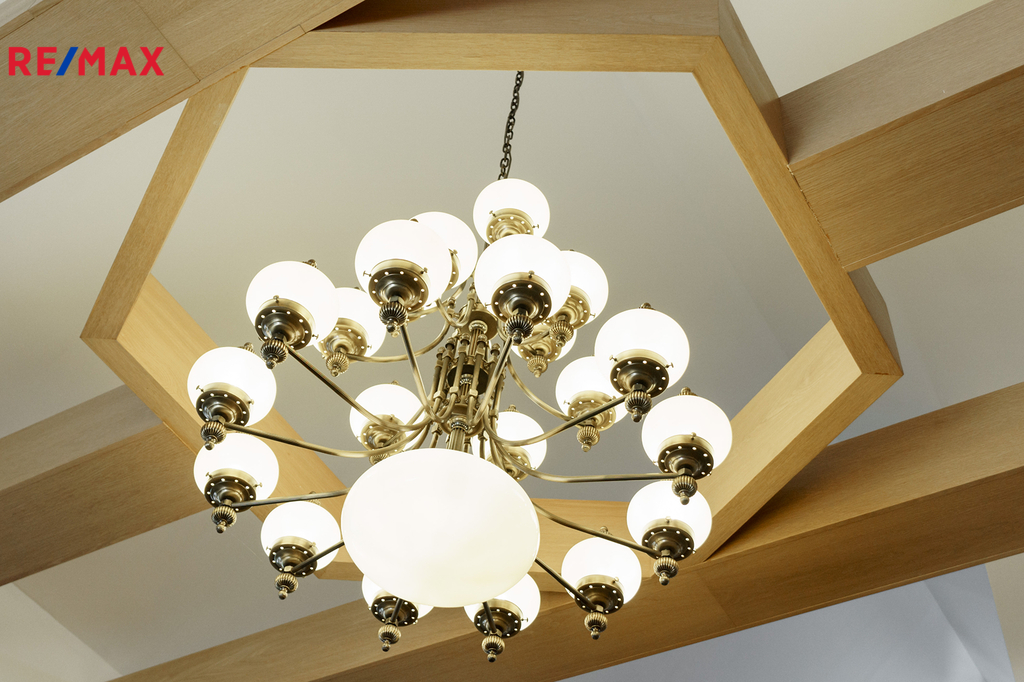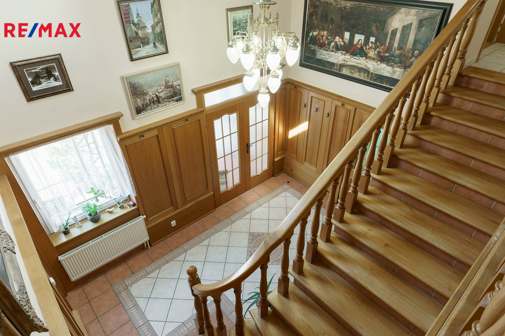 - stylové dřevěné prvky, parkety, lustry a elegantní detaily v celém interiéru