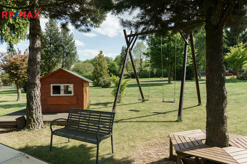 - venkovní posezení, zahradní domek, kopaná studna - hloubka 33m. Zahradu velmi rády využijí také děti, pro které se nabízí pískoviště, houpačky a dětský domeček.