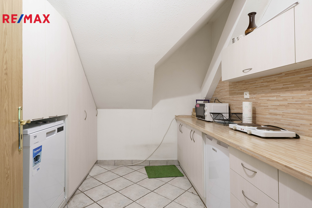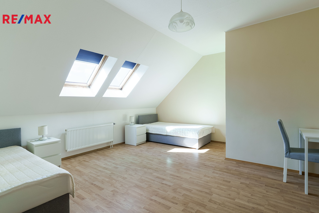 SOUČÁSTÍ DOMU JE TAKÉ PENZION, ideální pro ubytování hostů nebo dlouhodobé pronájmy – každý pokoj má vlastní koupelnu. K dispozici je také místnost na přípravu jídla s myčkou a ledničkou.