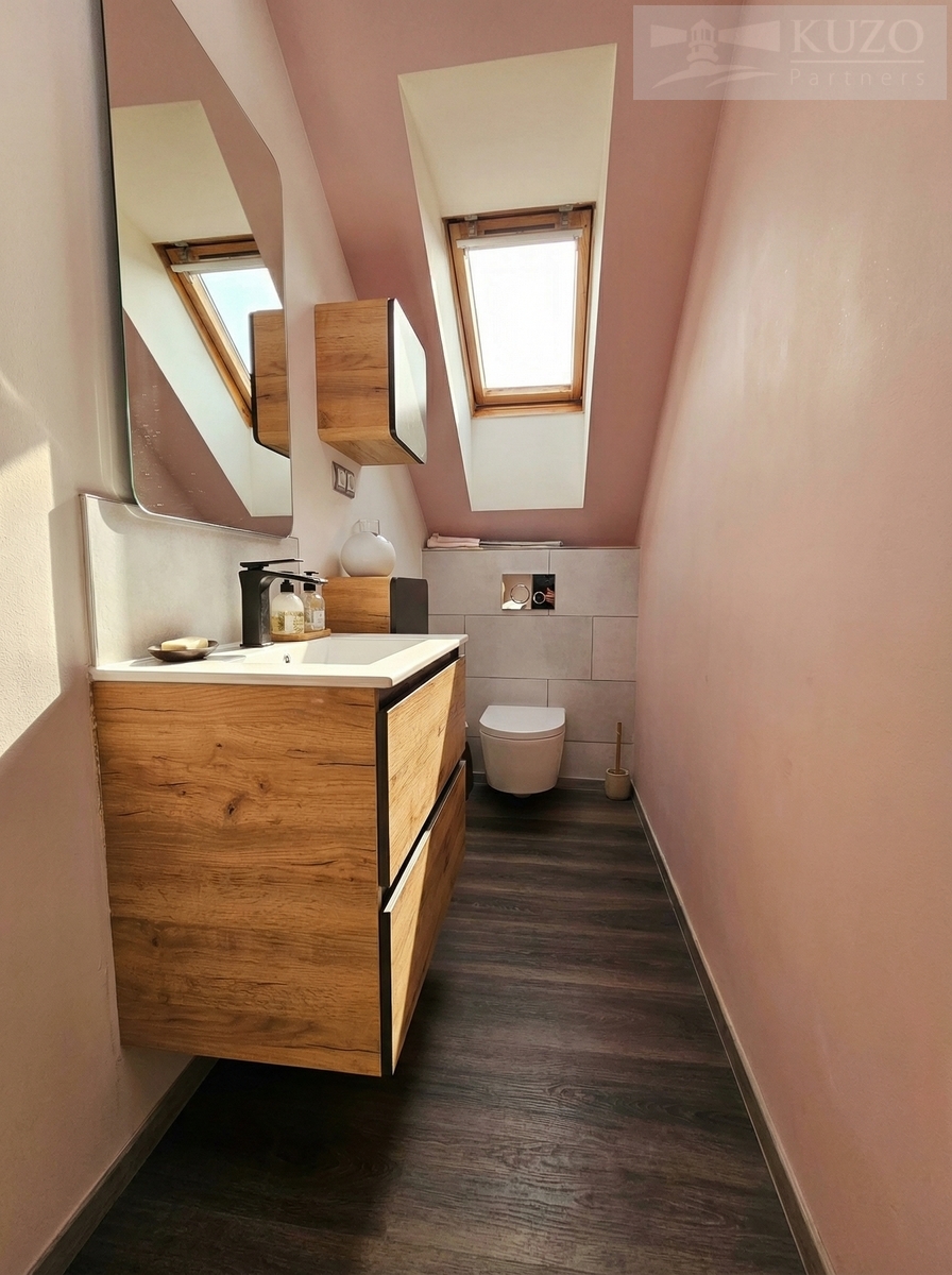 K dispozici je menší sklep a půda s potenciálem pro další vestavbu. Parkování je zajištěno na vlastním místě přímo před domem a další auta na ulici.