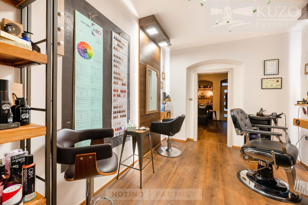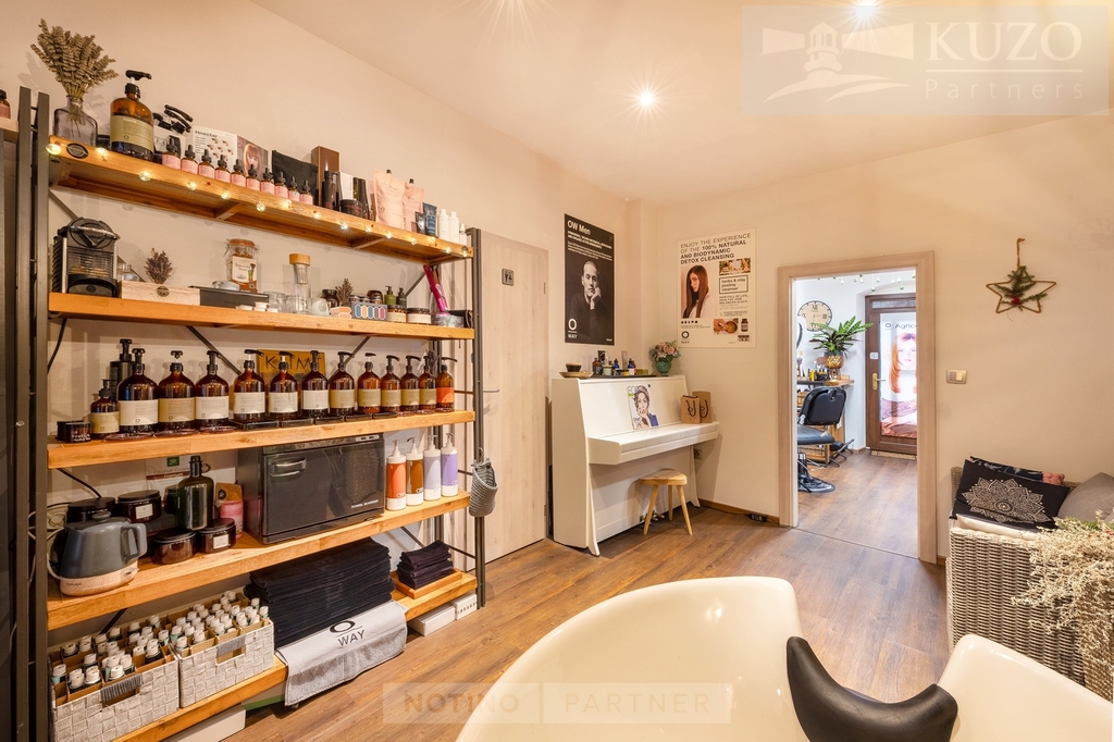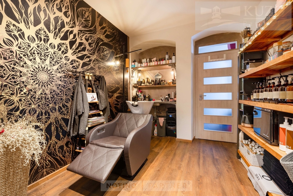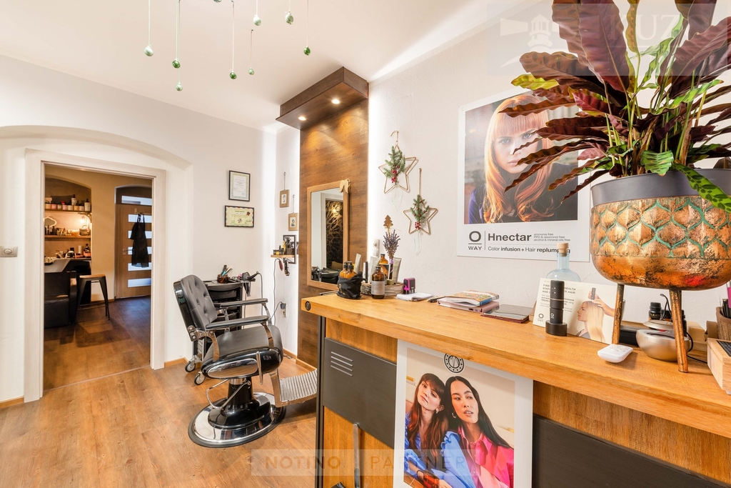 Součástí domu je exkluzivní komerční prostor s vlastním vstupem z ulice. Aktuálně slouží jako špičkové kadeřnictví (2 místnosti + WC pro klienty). Ideální pro vaši vlastní praxi, kancelář nebo jako investiční příležitost k pronájmu.