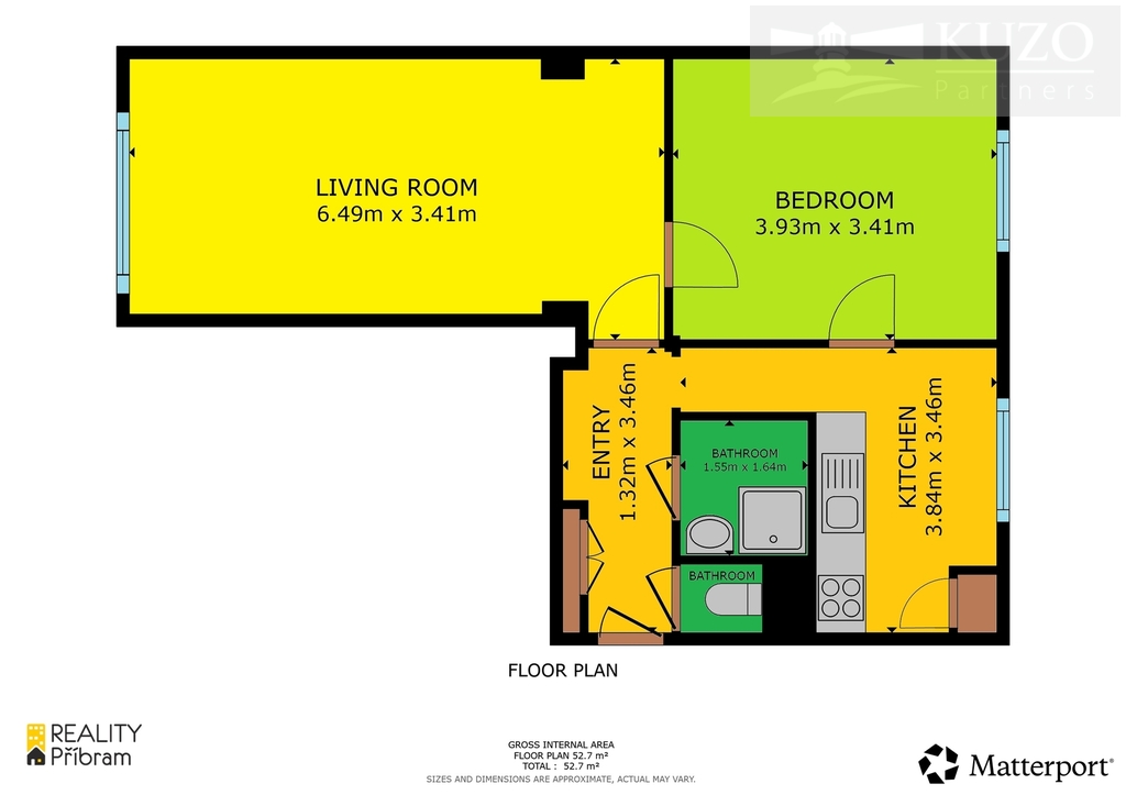 Výměry: Čistá podlahová plocha bytu je 52,7 m², což zaručuje dostatek prostoru pro komfortní život.
