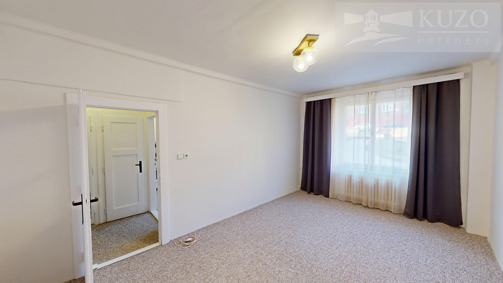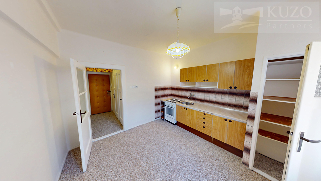 Prostorné a praktické uspořádání: Byt o dispozici 1+1 sestává z velkého obývacího pokoje a samostatné, prostorné kuchyně, která pohodlně pojme i jídelní kout.