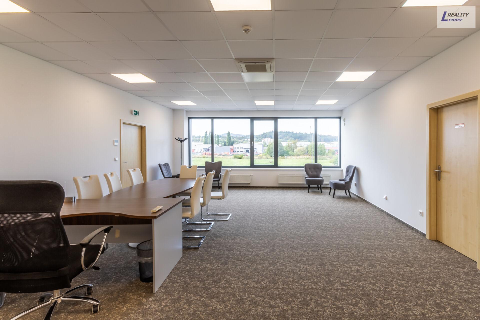 V první patře areálu se nachází cca 300 m2 kancelářských prostor a příslušenství: oddělení nákupu, oddělení kvality, vedoucí výroby, kancelářské místnosti, 3 archiv, zasedací místnost, serverovna, kuchyňka atd.