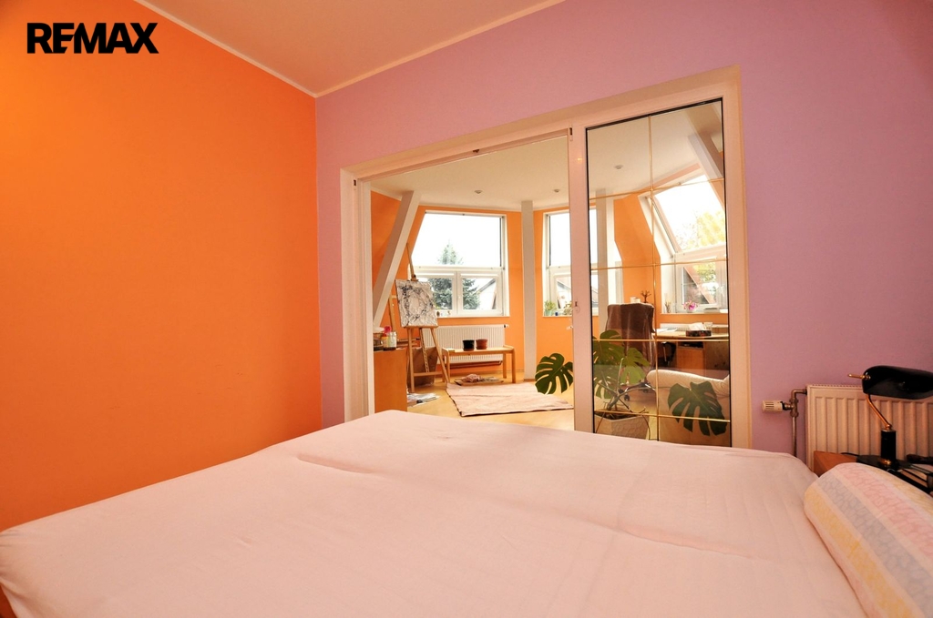 2. NP je na rozdíl od toho 1. věnováno více soukromí obyvatel domu, stále s důrazem na prostor pro všechny a všechno. Menší a dveřmi oddělitelná "dospělá" část, nabízí kromě ložnice s krbem a velké koupelny také šatnu, pracovnu a zimní zahradu. Druhá "dětská" část pak navíc dvě ložnice, ještě větší koupelnu a místo zimní zahrady je dnes ateliér.