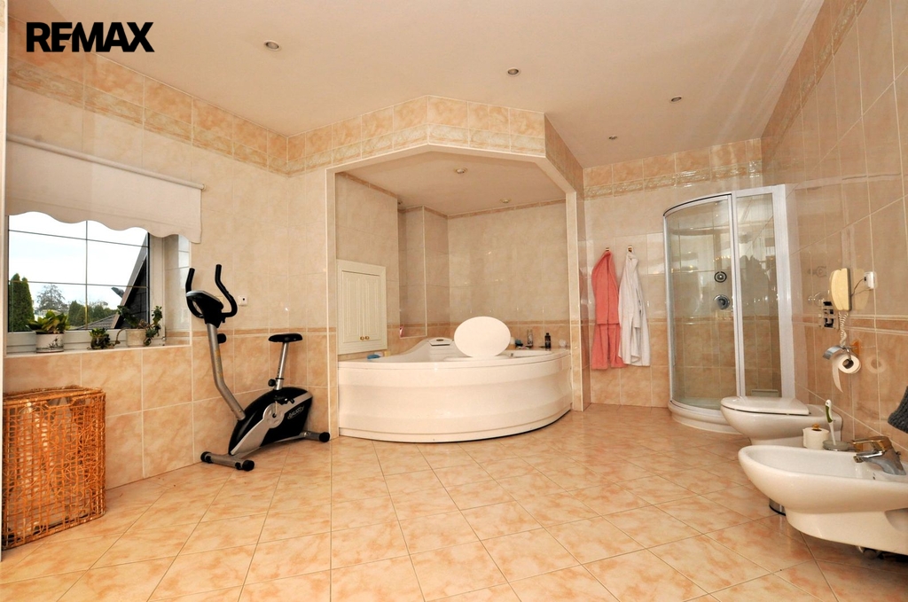Dům s plastovými okny je vytápěn do podlah a deskových radiátorů elektrickým kotlem. Teplou vodu obstarávají tři objemné bojlery. Celek je chráněn bezpečnostním a kamerovým systémem.