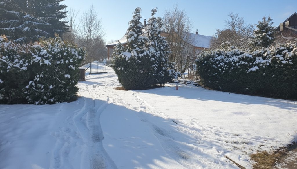Zahrada uvnitř které je dům situován je rovinatého charakteru, zatravněná bez pěstebních záhonů a s okrasnými jehličnany, které tvoří optickou "bariéru" od příjezdové obecní komunikace. Příjezdová i spojovací cesta vč. park. stání uvnitř pozemku je dlážděná.