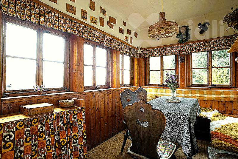 Připojeno na elektřinu, topení kamny na dřevo.
