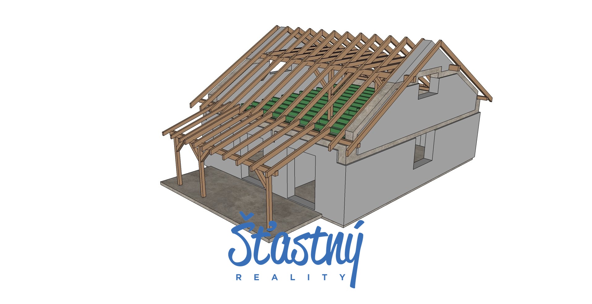 Kompletní projektová dokumentace k novostavbě energeticky úsporného RD (energetická třída A) s architekturou ve stylu horské chalupy.