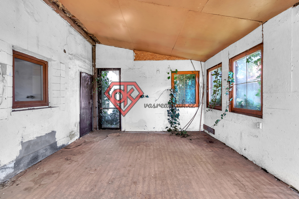 – obytná část: obývací pokoj s kuchyňským koutem, tři samostatné pokoje, koupelnu s toaletou, chodba, veranda a kotelna
