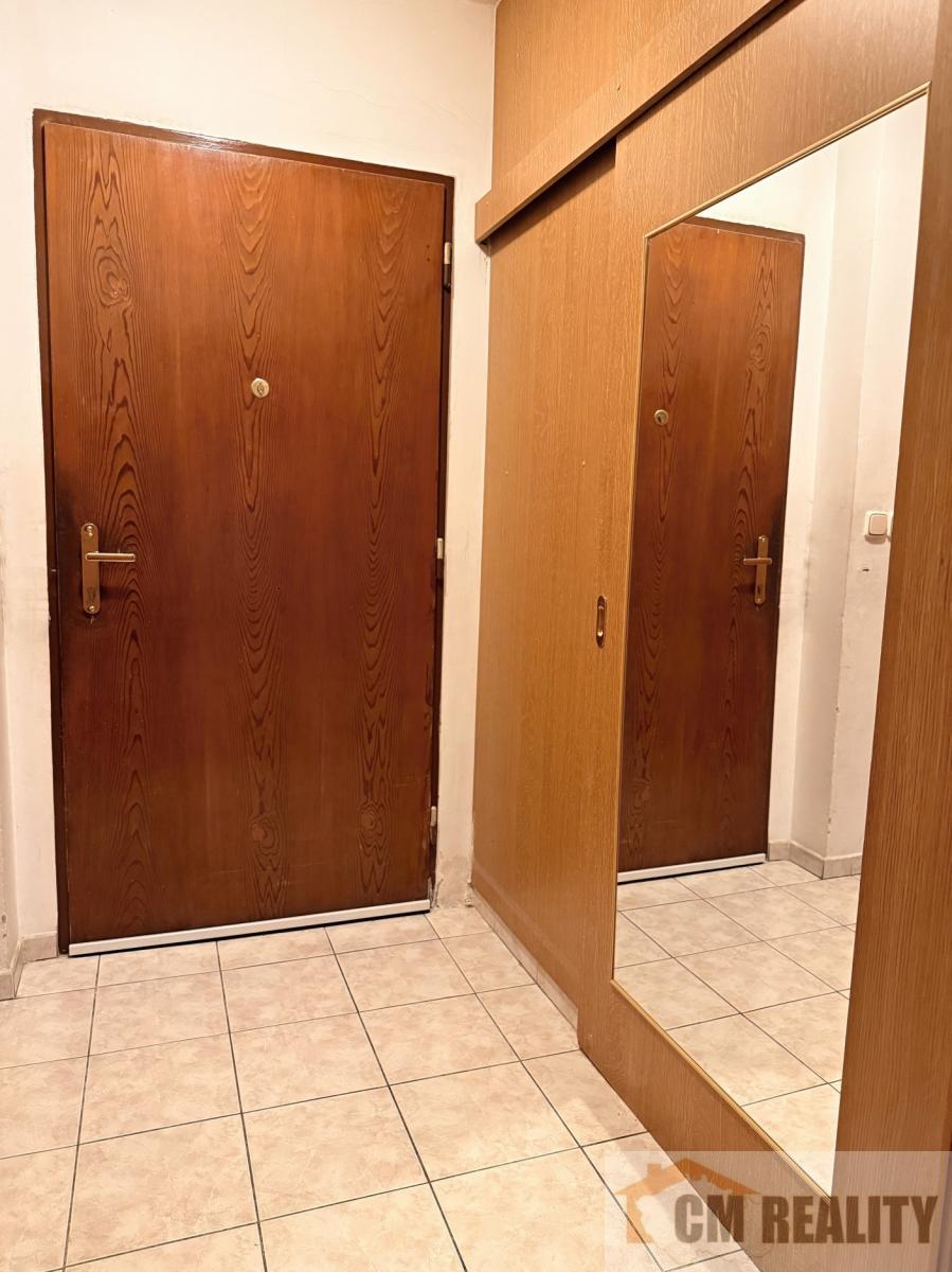 Byt má orientovány okna na obě strany domu, a to na jih a sever s pěkným výhledem na radnici. Při vstupu do bytu je nejprve malá chodba se zabudovanou šatní skříní, botníkem a věšákem na kabáty, vstupem na samostatné WC a dveře vedoucí do velké prostorné haly, ve které jsou prostorné šatní skříně, vstup do první ložnice, vstup do kuchyně a vstup do hlavního obývacího pokoje o velikosti 30 m2. Kuchyně má malý balkon a spižírnu, je zde kuchyňská linka s elektrickým sporákem a troubou. Hlavní obývací pokoj je situován jako centrum celého bytu, ze kterého vedou samostatné vstupy do druhé a třetí ložnice, koupelny. Na jižní stranu má byt prostorný balkon. V koupelně je jak sprchový kout, tak i vana a umyvadlo, je zde i prostor pro automatickou pračku. Vytápění v celém bytě je elektrickými přímotopy. Na podlaze jsou parkety a dlažba. V bytě není zaveden plyn - elektrický sporák. PENB zatím nebyl dodán, proto uvádíme třídu G.