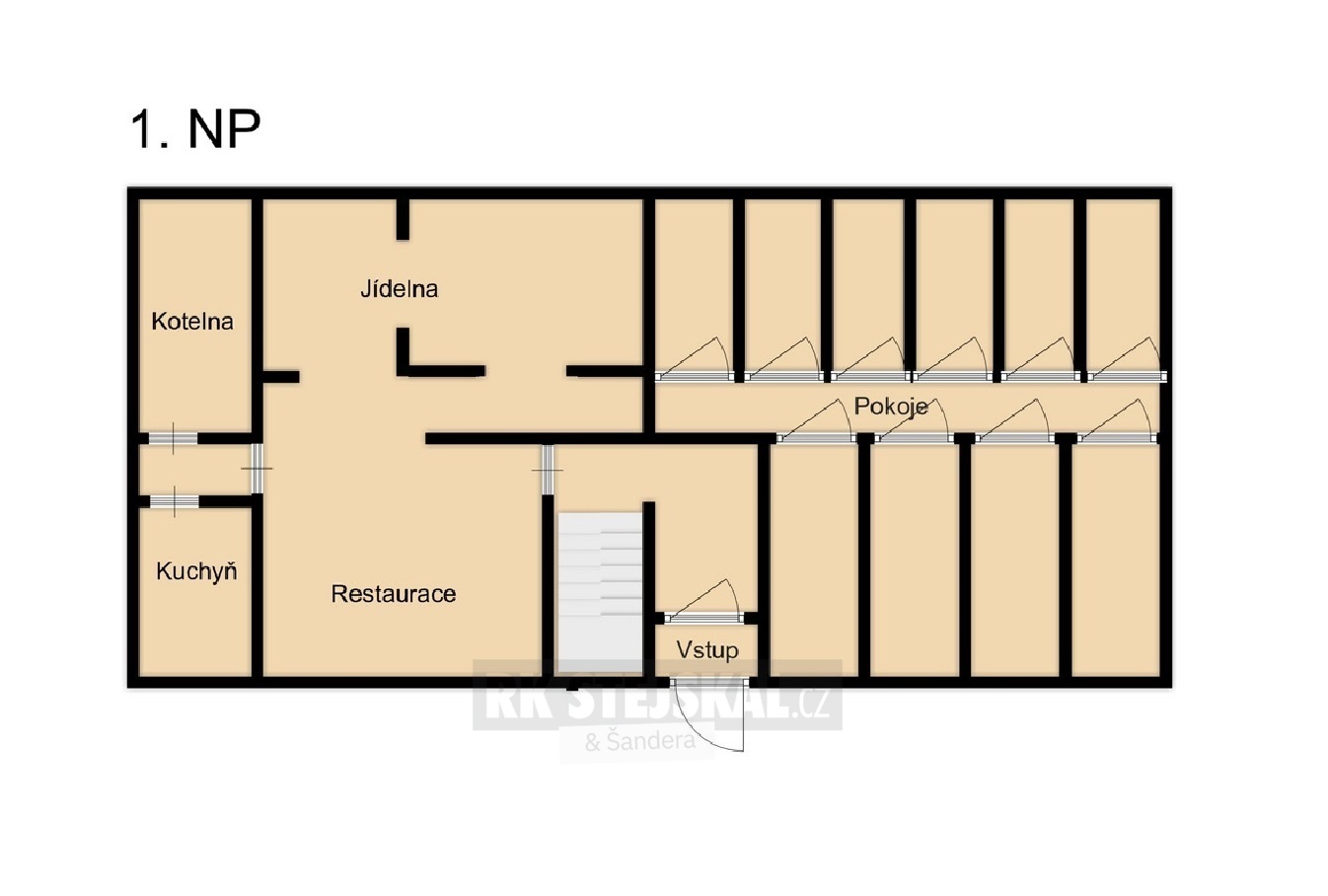 - Restaurace s ubytováním: Prostor pro restauraci s hotelovým zázemím