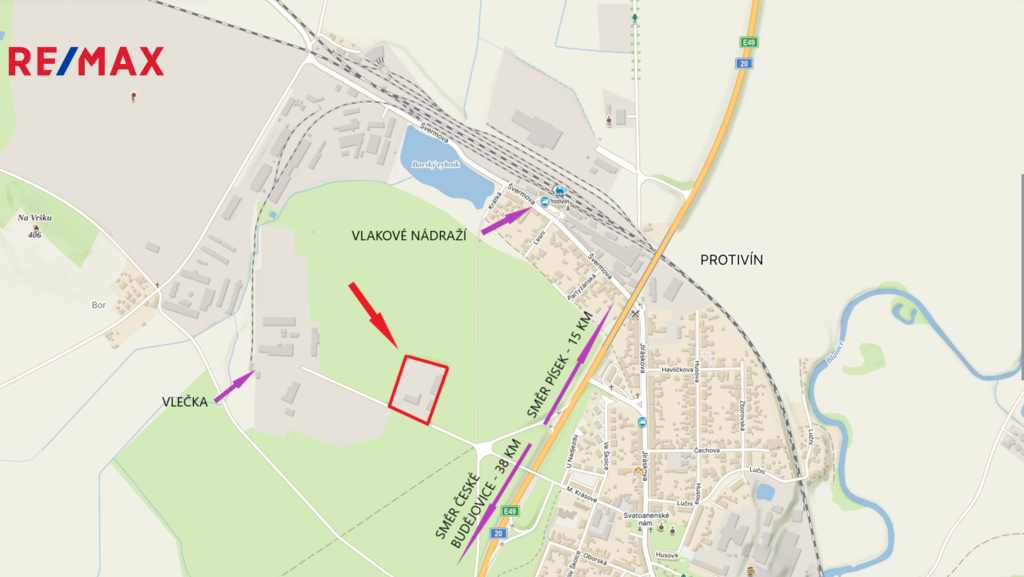 Areál se nachází u hlavního tahu silnice E49 (směr České Budějovice/Linz - Praha), v dojezdové vzdálenosti cca 20 km od dálnice, 15 km od Písku, 38 km od Českých Budějovic, 1,3 km od centra města Protivín.