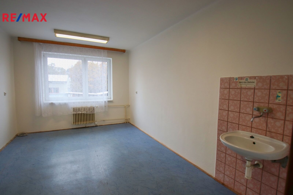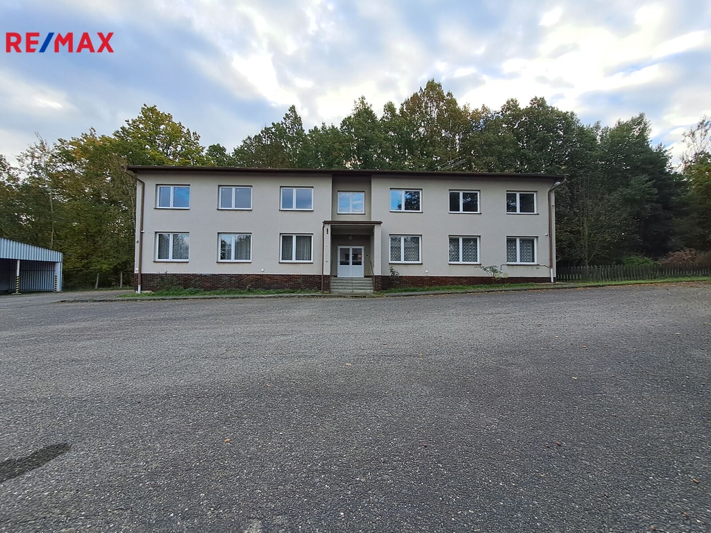 A. - dvoupodlažní budovy (užitná plocha 503 m2) se zázemím pro administrativu včetně stravovací, ubytovací a skladovací kapacity. V prvním podlaží se nachází 3 kanceláře, 2 sklady, jídelna/jednací místnost, 2 kuchyně, převlékárna, toalety pánské/dámské, koupelna. V druhém podlaží je 9 místností, které lze využít jako kanceláře či ubytování, dále se zde nachází koupelny a sociální zařízení, technická místnost, kuchyně. Dříve 2NP sloužilo jako ubytovna zaměstnanců a byt správce areálu. Budova je zděná, plastová okna, vytápěna plynem, napojena na elektřinu, kanalizaci a vodu, přípojka telefonu- Cetin, internet.