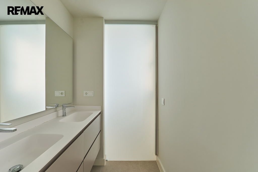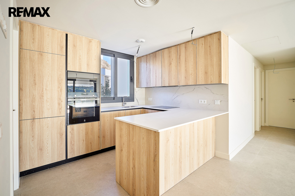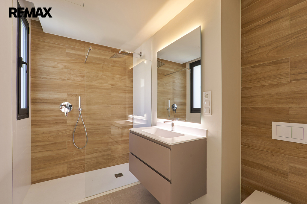Interiér je proveden ve vysokém standardu s důrazem na kvalitní materiály a nadčasový design. Podlahy tvoří leštěná porcelánová dlažba Marazzi v odstínu Work Grey, použitá v interiéru i na terase v protiskluzové úpravě. Kuchyň je vybavena vestavnými spotřebiči značky Balay. Koupelny disponují sanitou Duravit Neo, umyvadly Mineralmarmo, bateriemi TRESS Class a sprchovými kouty s obklady v dekoru dřeva. Samozřejmostí jsou hliníková okna a posuvné dveře s výbornou tepelnou i akustickou izolací, bezpečnostní vstupní dveře a vestavěné skříně.